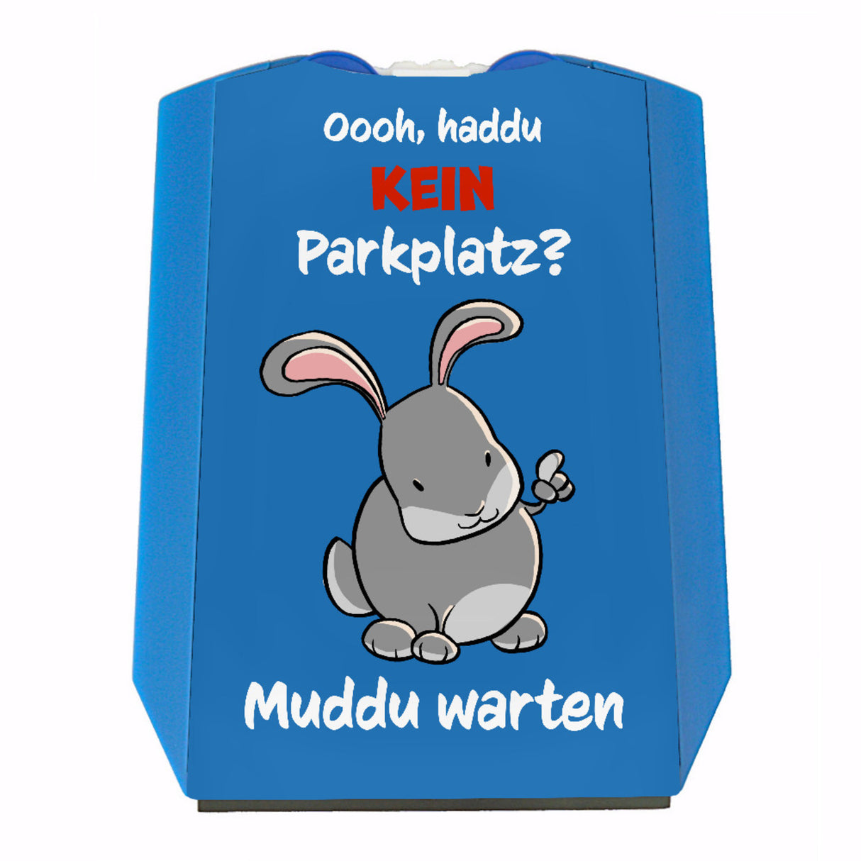 • Du hast endlich einen Parkplatz ergattert und verhöhnst deine Mitbewerber um Parkplätze gern ein bisschen? Dann ist diese Parkscheibe das Richtige für dich. Etwas fies sagt dieses niedliche Häschen 'Oooh, Haddu keinen Parkplatz? Muddu warten'.