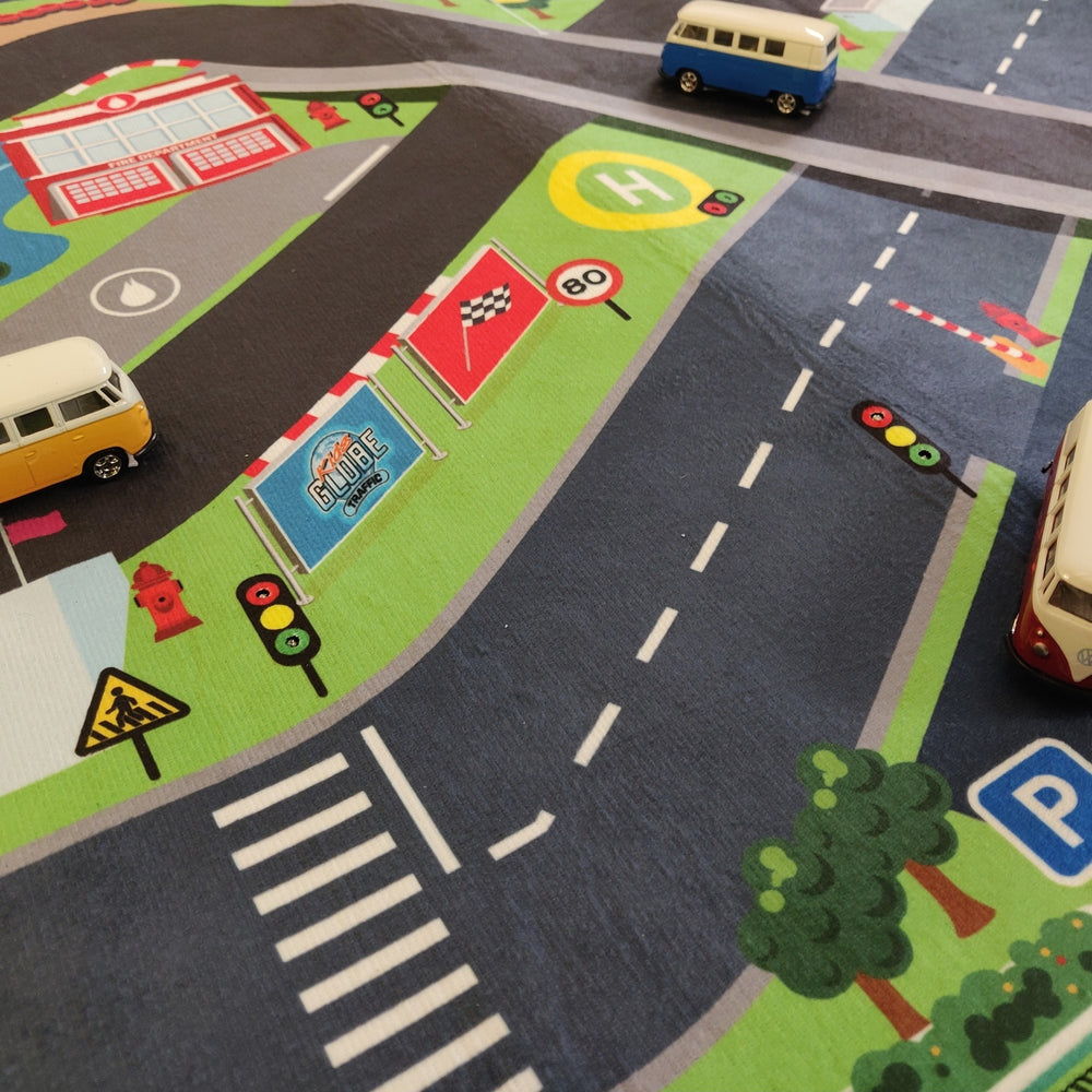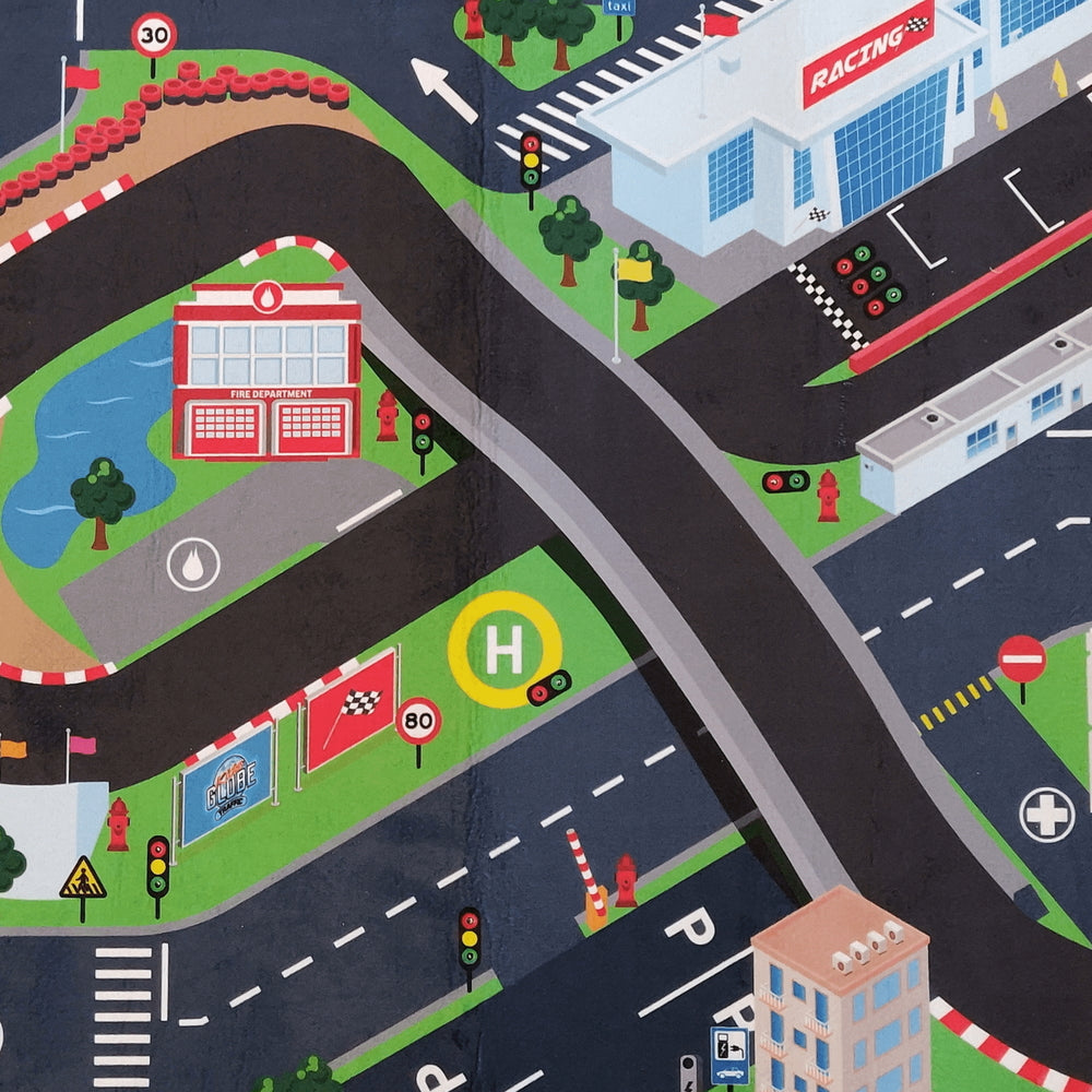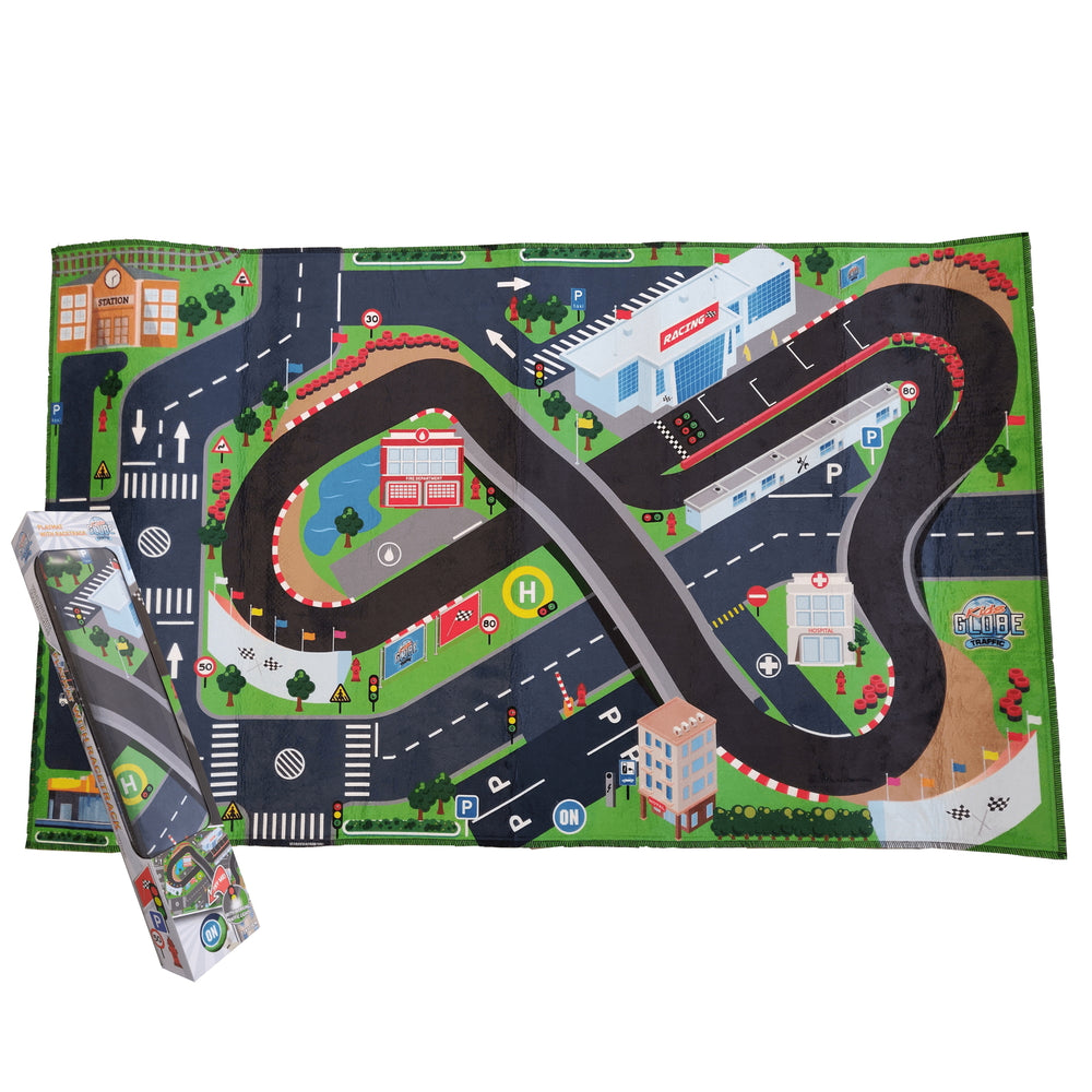 - Lieferumfang: 1x Rennbahn Straße Spielteppich.