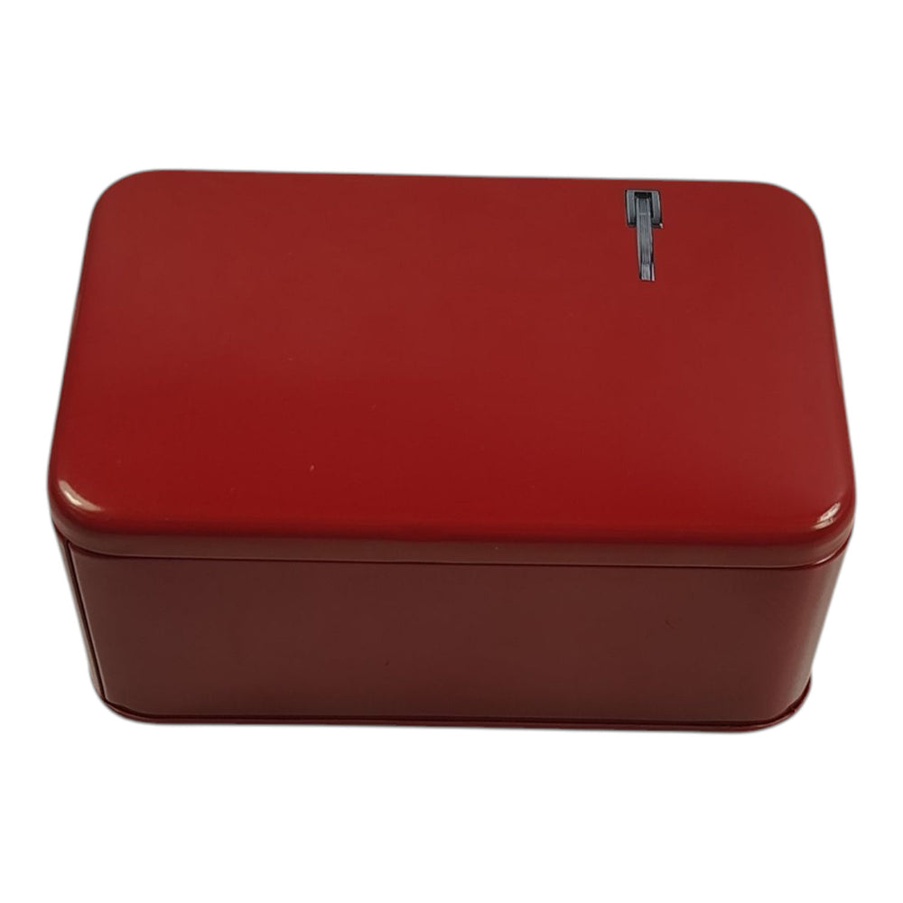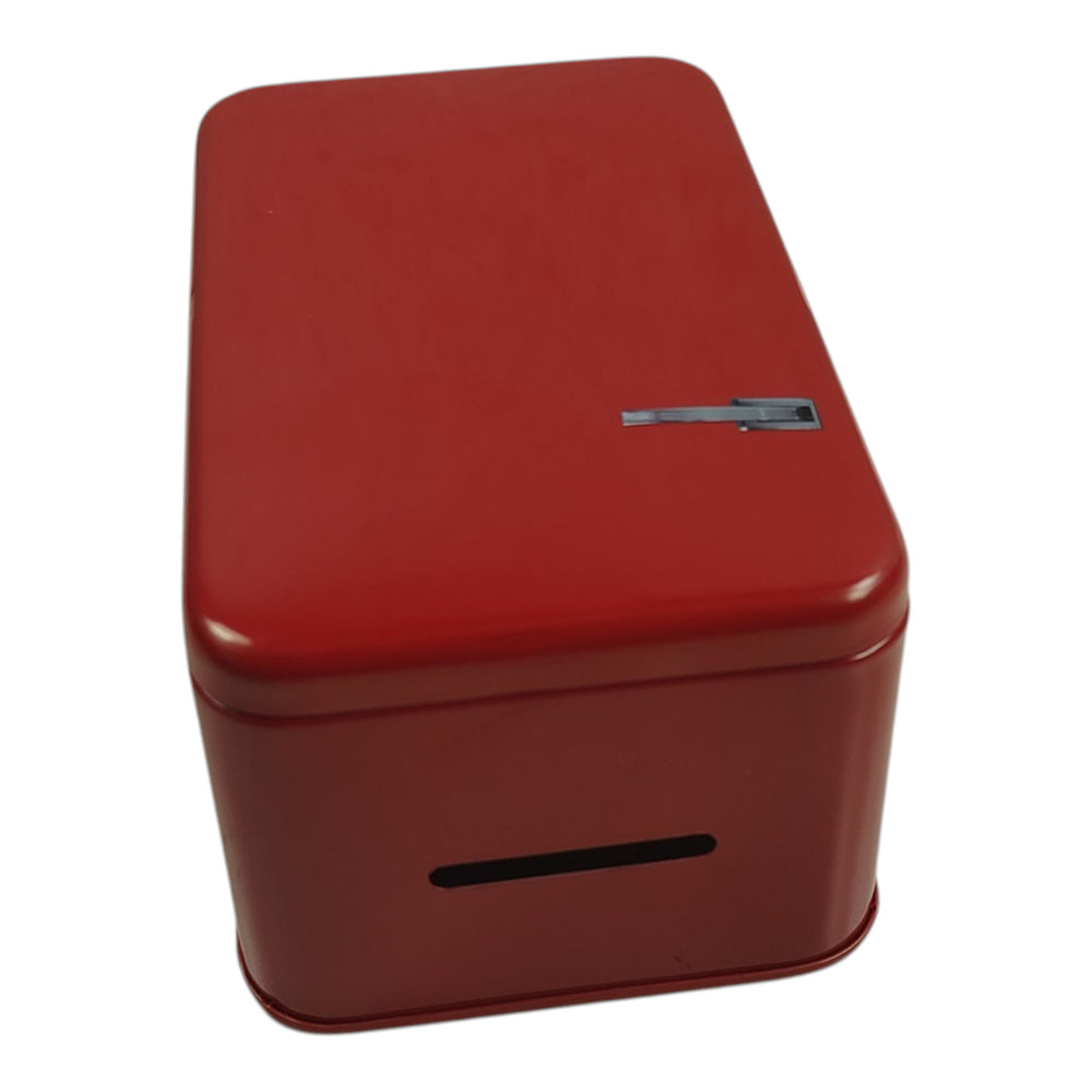 - Diese rote Schönheit in Form eines Mini Kühlschranks aus Metall hat ein schlichtes, aber ikonisches Retro-Design mit einem aufgedruckten Türgriff. Sie lässt sich waagerecht öffnen und bietet eine untere Öffnung zum Geldentnehmen. Der Münzeinwurf-Schlitz oben sorgt für kinderleichtes Sparen.