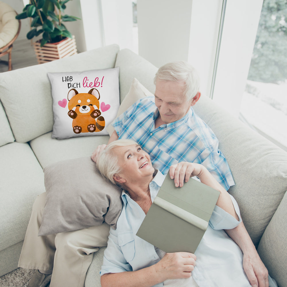 Roter Panda Kissen mit Spruch Hab dich lieb