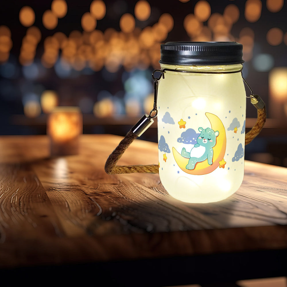 • Dieses Solarlicht ist nicht nur eine Dekolampe, sondern auch eine umweltfreundliche Lichtquelle. Mit seinem Solardeckel sammelt es tagsüber Sonnenenergie und verwandelt sie nachts in ein sanftes Licht. Perfekt, um Kindern die Angst vor der Dunkelheit zu nehmen oder einfach nur zum Träumen!