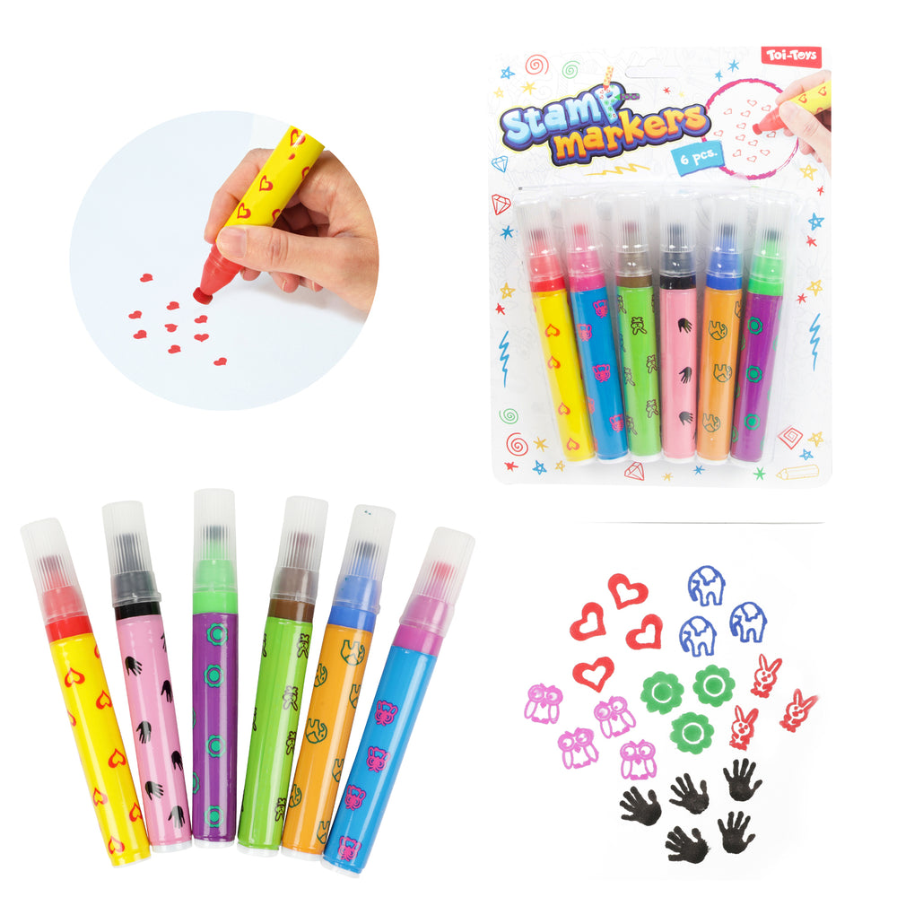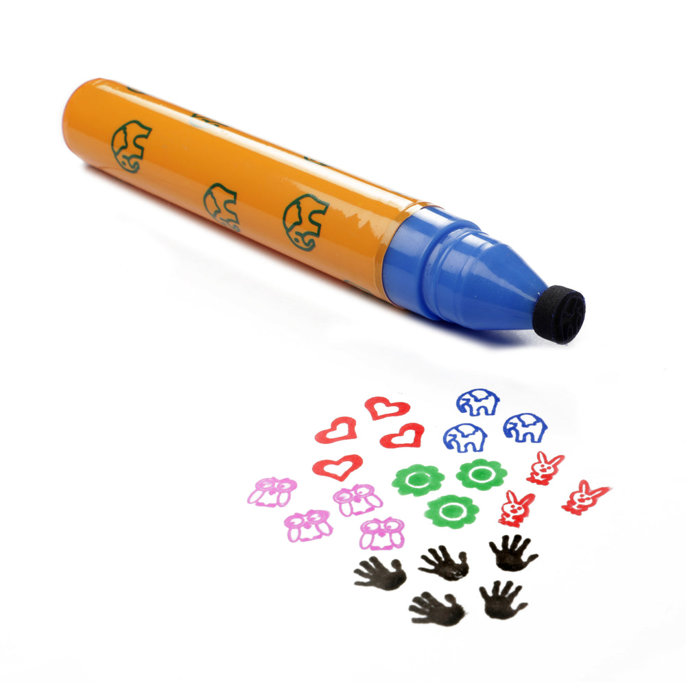 - Die Stempelstifte kommen in sechs verschiedenen Designs, die für Spaß und Abwechslung sorgen! Mit Herzen, Eulen, Elefanten, Blumen, Hasen und Handabdrücken in leuchtenden Farben kannst du deiner Kreativität freien Lauf lassen. Einfach den Deckel abnehmen, drücken, stempeln und staunen!
