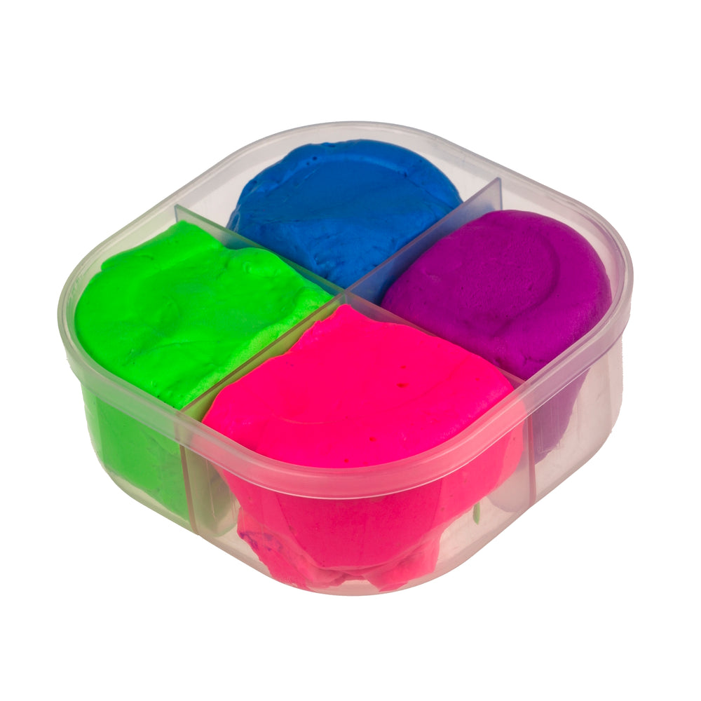 - Die vierfarbige Springknete in den leuchtenden Farben Rosa, Lila, Blau und Grün lässt sich leicht kneten und formen. Das Design in der praktischen Kunststoffbox sorgt dafür, dass die Knete immer frisch bleibt. Einfach zu handhaben und farbenfroh, ermöglicht sie endlose Stunden spielerischer Kreativität.