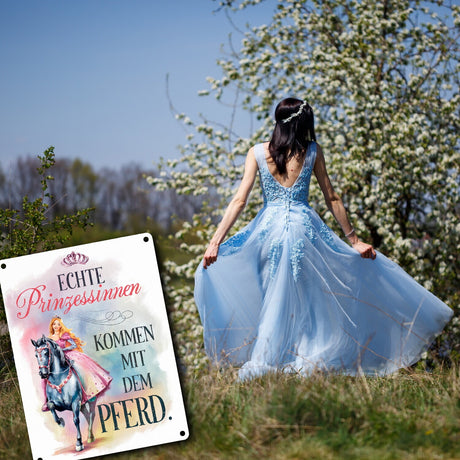 Ab €7,90Grundpreis /Nicht verfügbarAuf LagerEchte Prinzessinnen reiten Pferde Metallschild in 15x20 cm