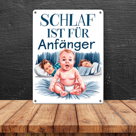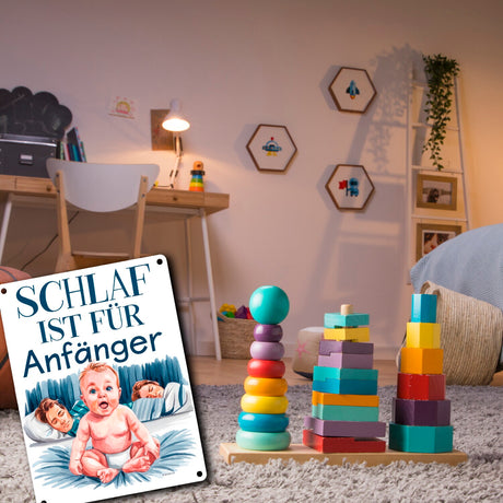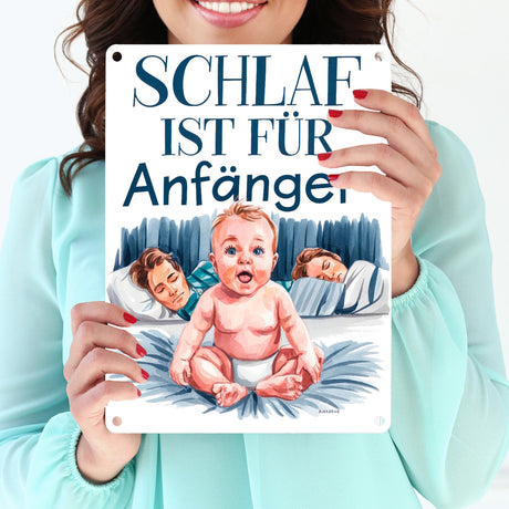 €9,49Grundpreis /Nicht verfügbarAuf LagerSchlaf ist für Anfänger Metallschild in 15x20 cm Baby in Windeln