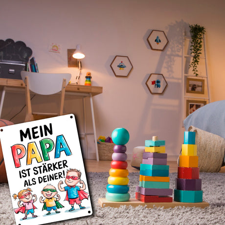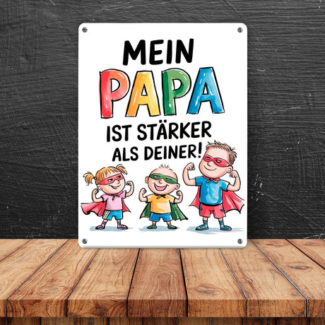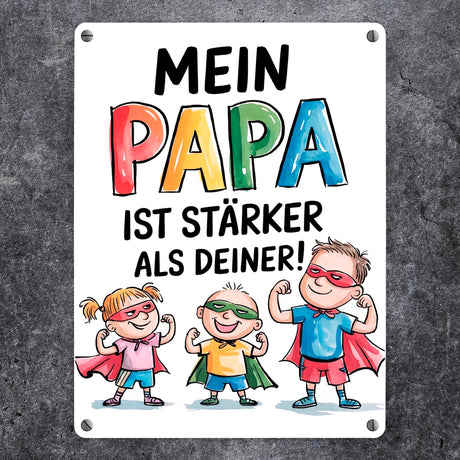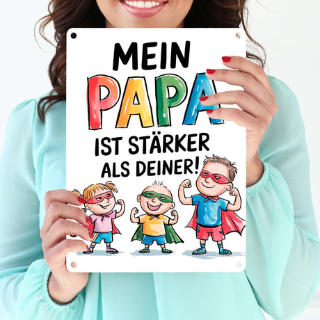 Mein Papa ist der stärkste Superheld Metallschild in 15x20 cm
