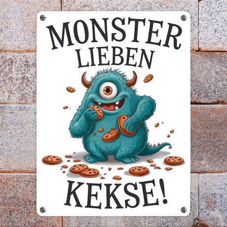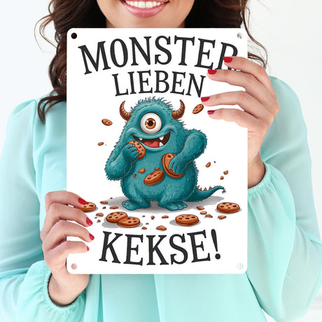Ab €7,90Grundpreis /Nicht verfügbarAuf LagerBlaues Monster mit Keks Metallschild in 15x20 cm Monster lieben Kekse
