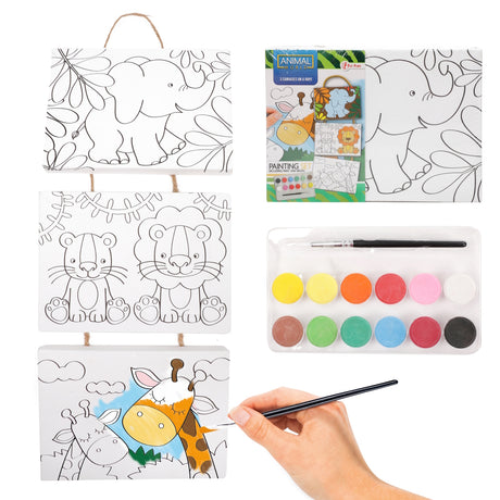 €21,95Grundpreis /Nicht verfügbarBegrenzter Vorrat (3 Einheiten)Wildtiere Malset für Kinder mit 3 Leinwänden, 12 Farben und Pinsel