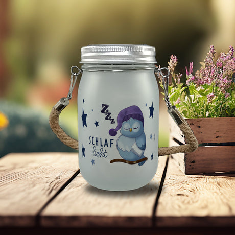 Schlafende Eule Solarlicht mit Spruch Schlaflicht