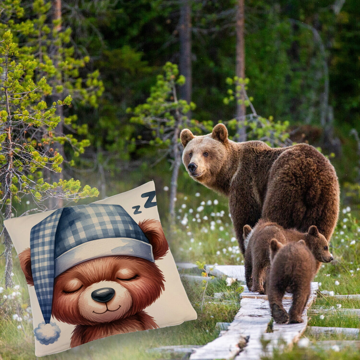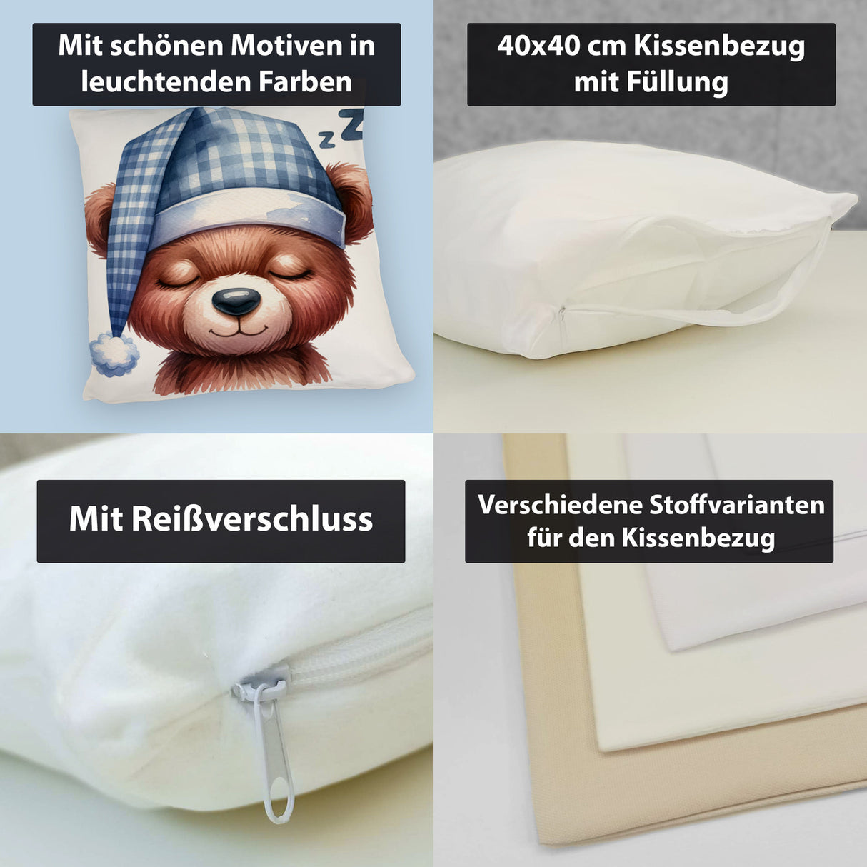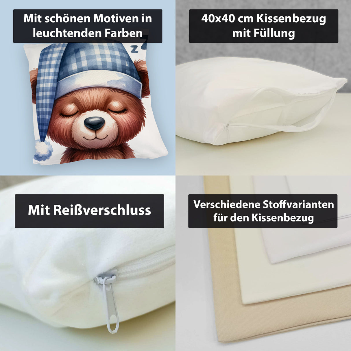 - 1x Braunbär Kissen in der gewählten Ausführung