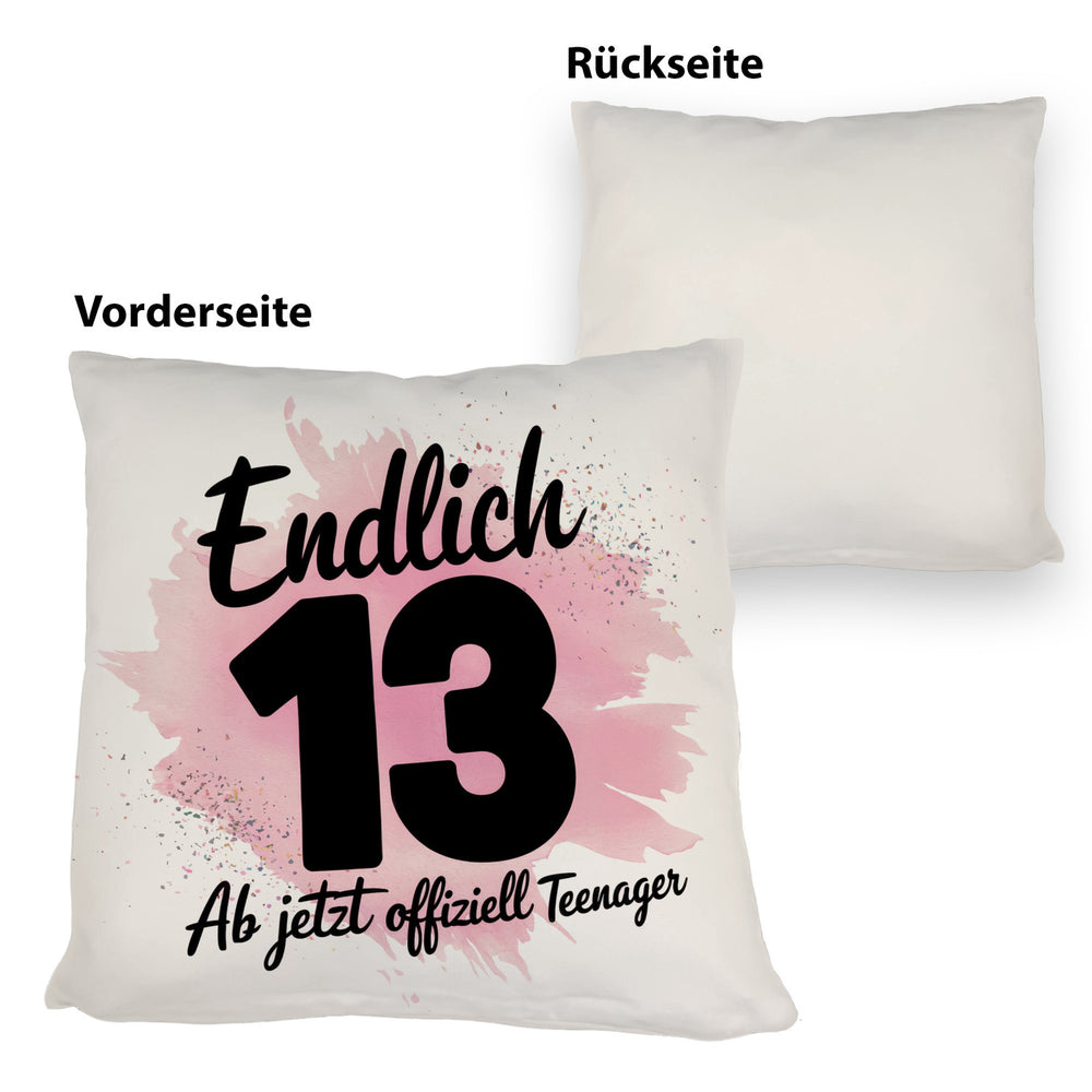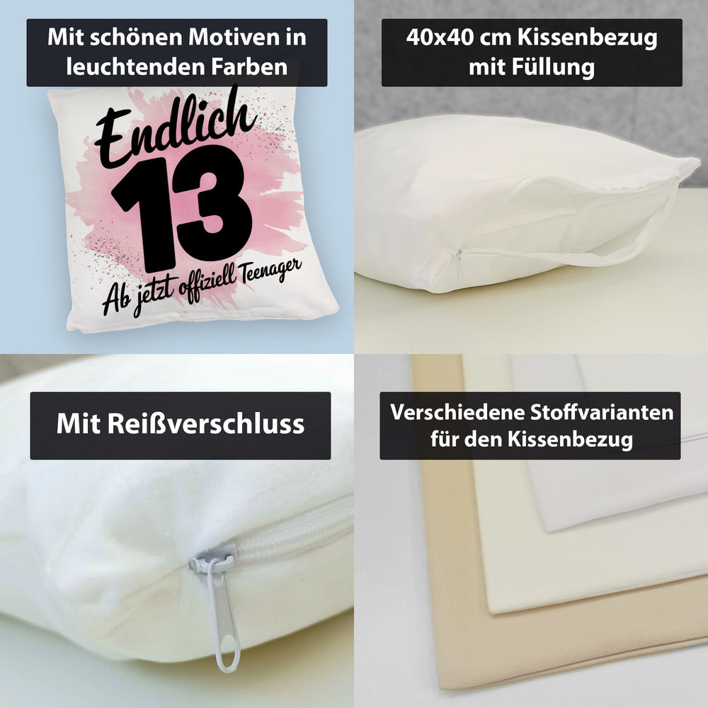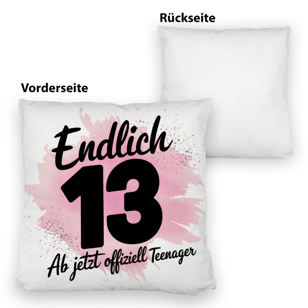 - 1x Endlich 13 ab jetzt offiziell Teenager Kissen in der gewählten Ausführung
