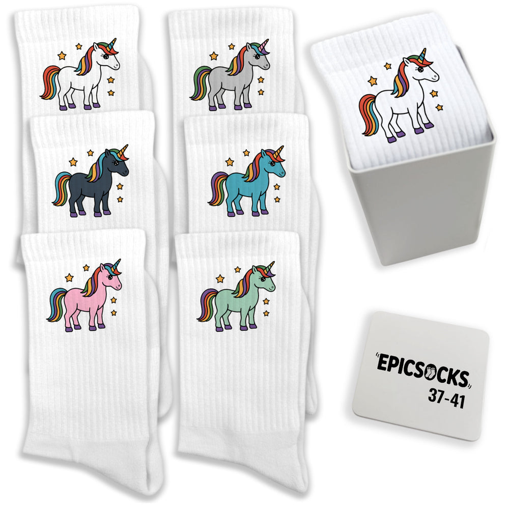 • 1x epicsocks Unicorn Dreams Socken in 37-41 im 6er Set in Geschenkdose im 6er Set in Geschenkbox in der gewählten Größe