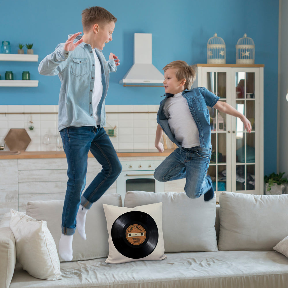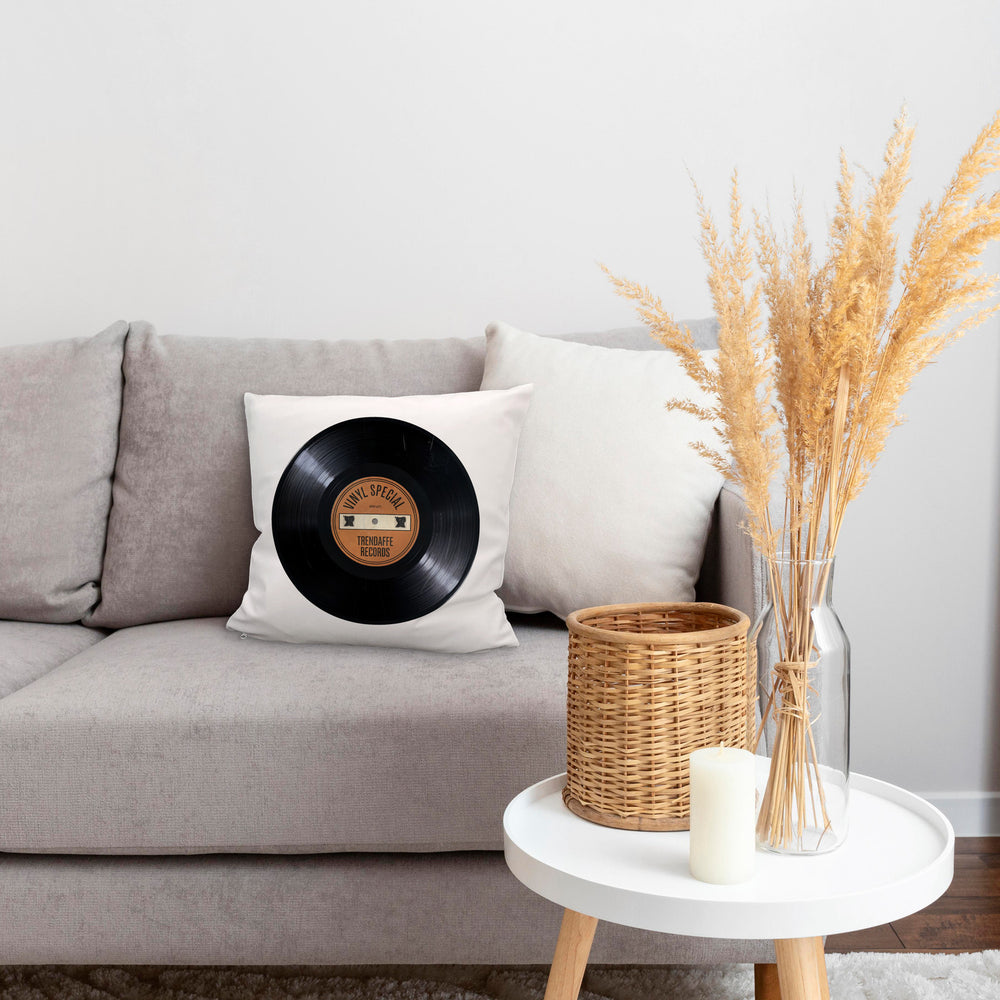 - Dieses Schallplatten Vinyl Special Kissen bringt den Groove in dein Wohnzimmer! Das Kissen hat ein cooles Retro Vintage Design mit einer runden Schallplatte drauf. Perfekt für Musikliebhaber und Retro-Fans, die die Nostalgie der guten alten Zeiten lieben. Schnapp dir deins und fang an, deinen Wohnraum aufzupeppen!