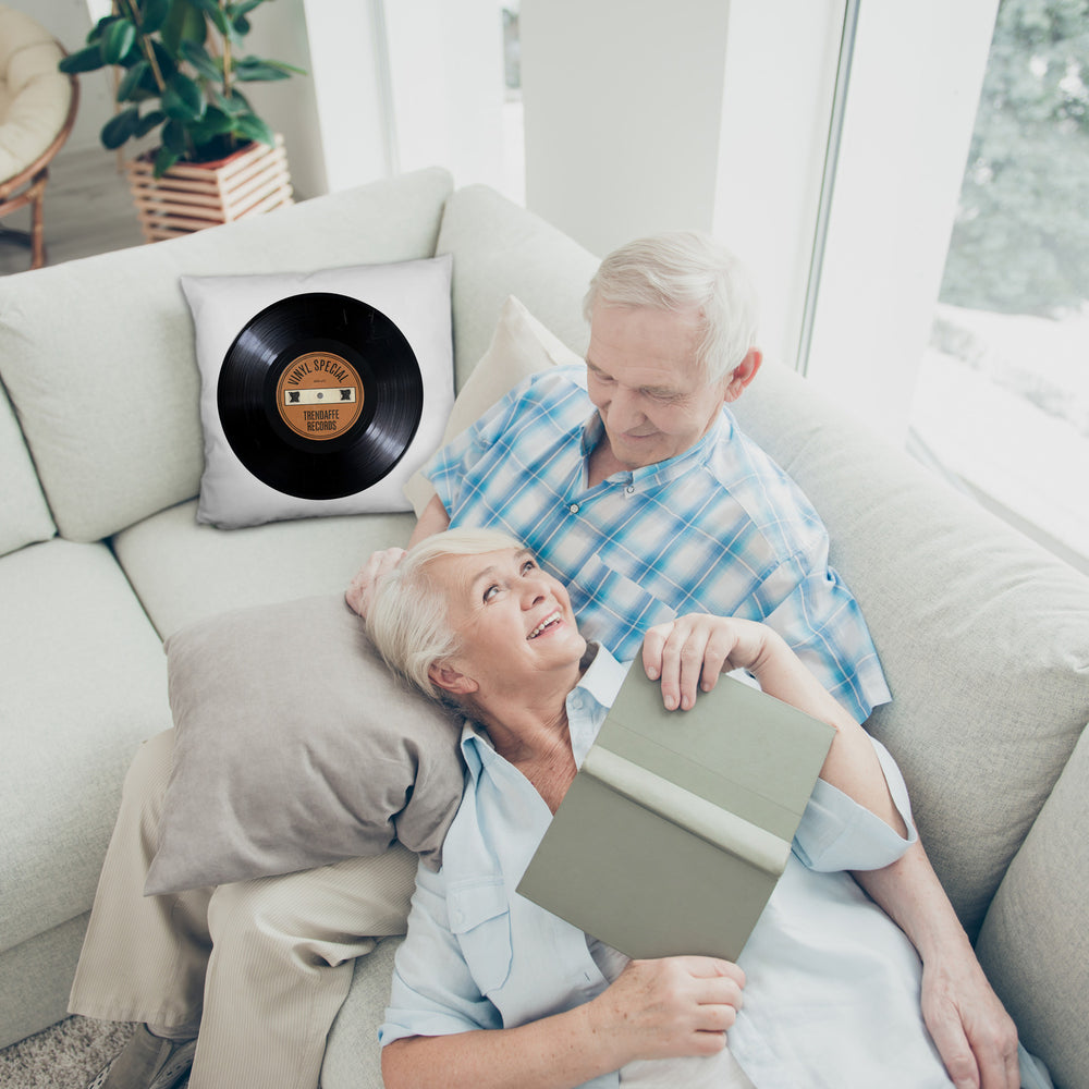 - Hol dir das Schallplattenkissen, das deinem Zuhause ein Hauch von Nostalgie verleiht! Mach es dir auf dem trendigen Kissen gemütlich und feiere die Schätze aus der goldenen Ära der Musik. Perfekt als Geschenk für Musikliebhaber oder um deinen eigenen Retro-Dekor zu vervollständigen. Leg dich auf's Vinyl!