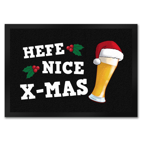 Bier mit Weihnachtsmütze Fußmatte in 35x50 cm mit Spruch Hefe nice X-mas