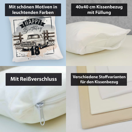 Ab €16,95Grundpreis /Nicht verfügbarAuf Lager18. Geburtstag mit niedlichem Pferd Kissen mit Spruch Happy Birthday 18