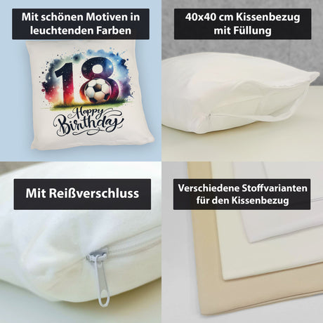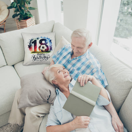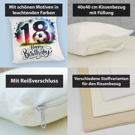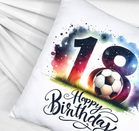 Ab €16,95Grundpreis /Nicht verfügbarAuf Lager18. Geburtstag Fußball Kissen mit Spruch Happy Birthday 18