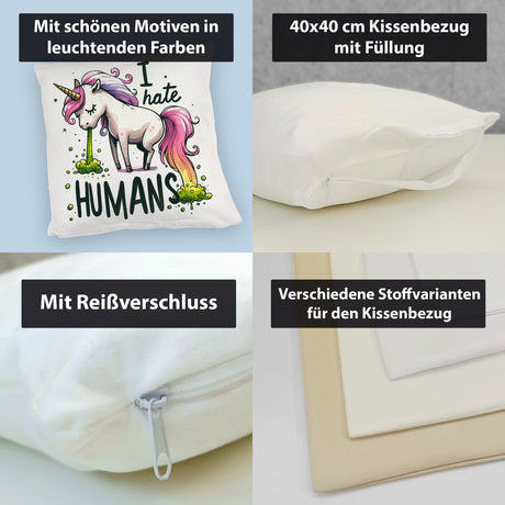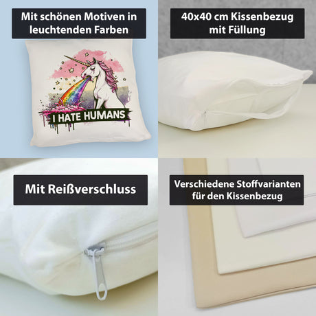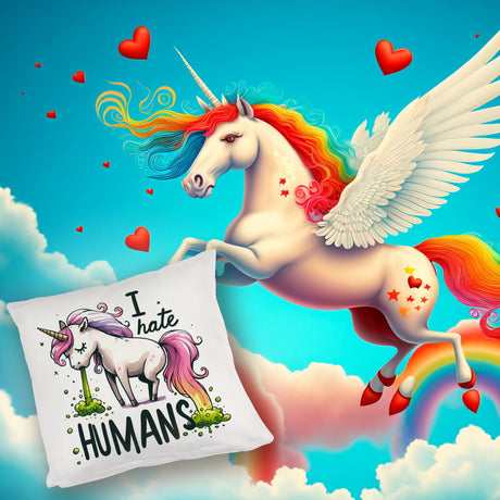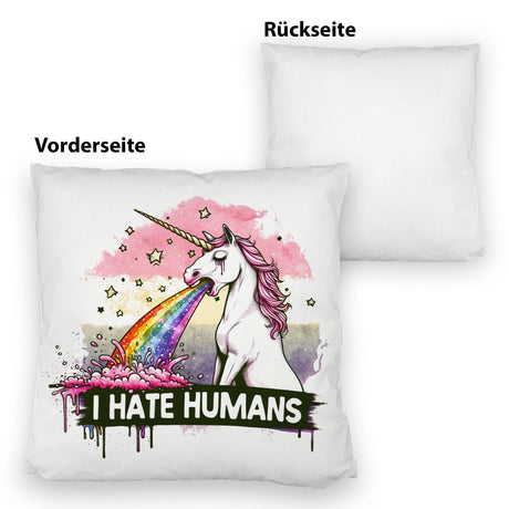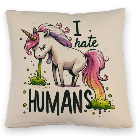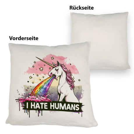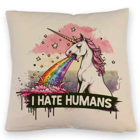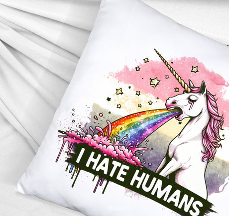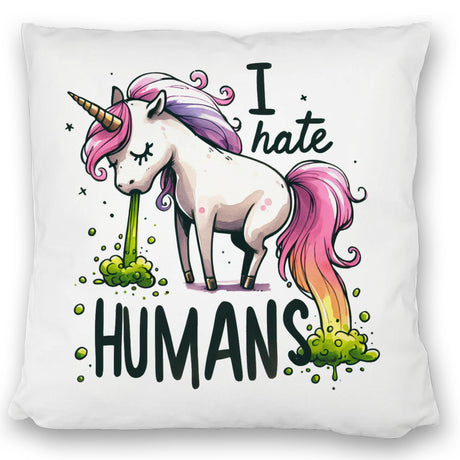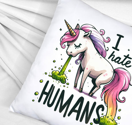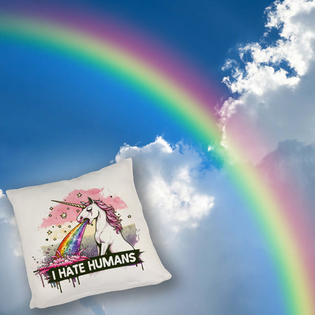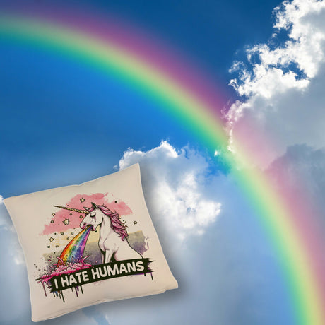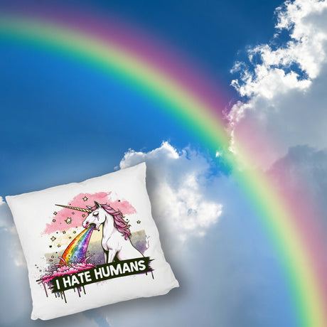 Ab €16,95Grundpreis /Nicht verfügbarAuf LagerEinhorn kotzt Regenbogen Kissen mit Spruch I hate Humans