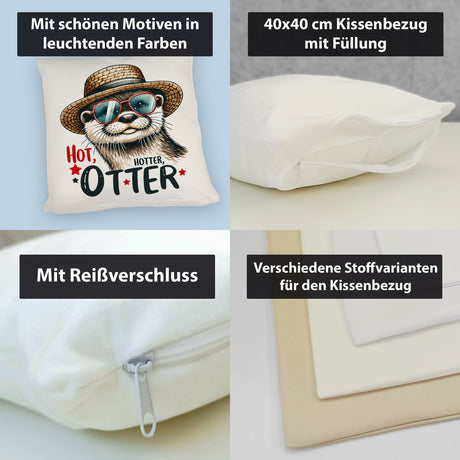 Ab €16,95Grundpreis /Nicht verfügbarAuf LagerOtter mit Sonnenbrille und Strohhut Kissen mit Spruch Hot Hotter Otter