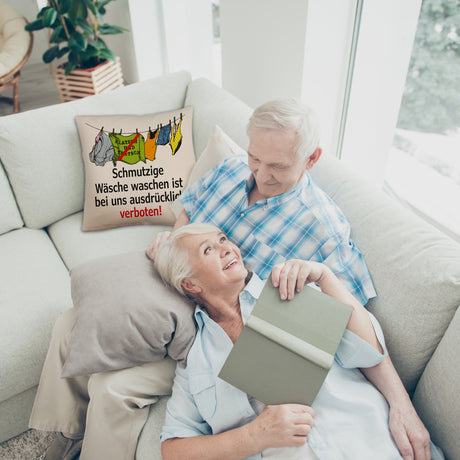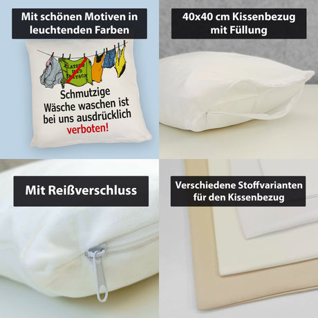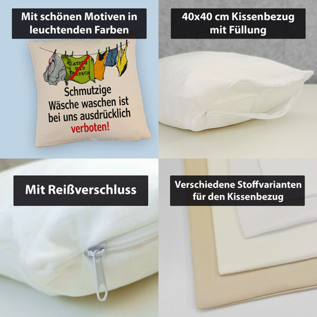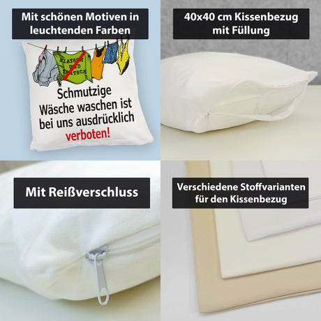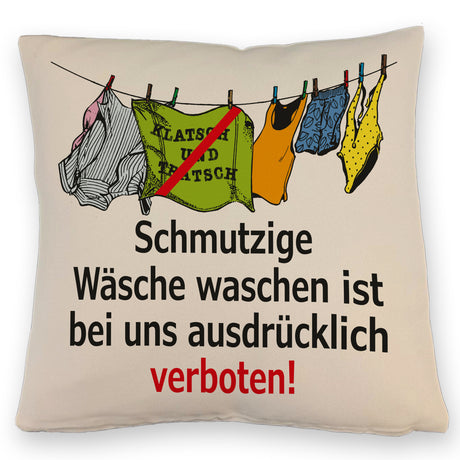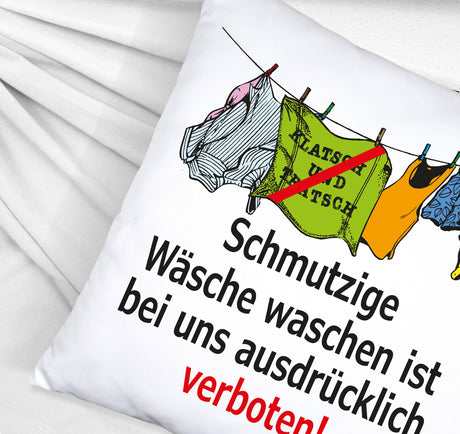 Ab €16,95Grundpreis /Nicht verfügbarAuf LagerKlatsch und Tratsch Kissen mit Spruch: Schmutzige Wäsche waschen verboten!