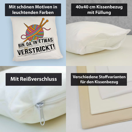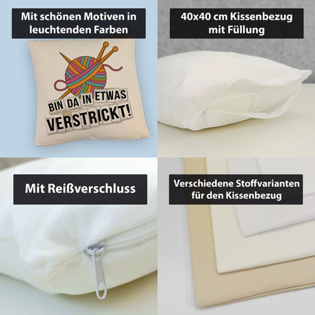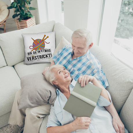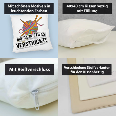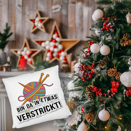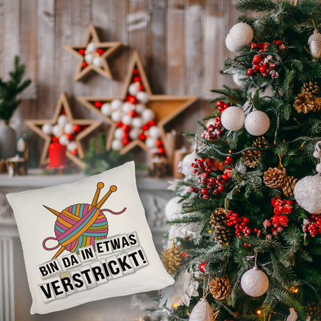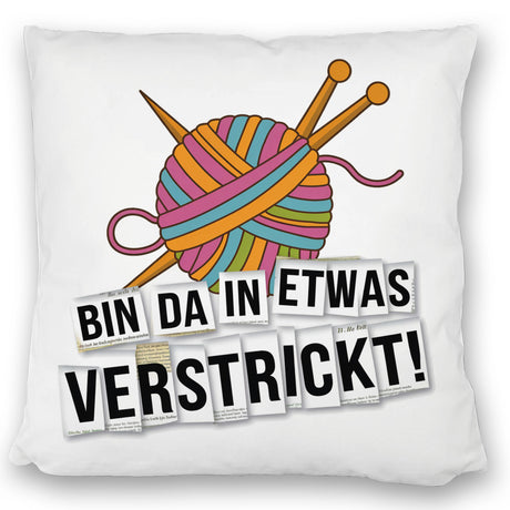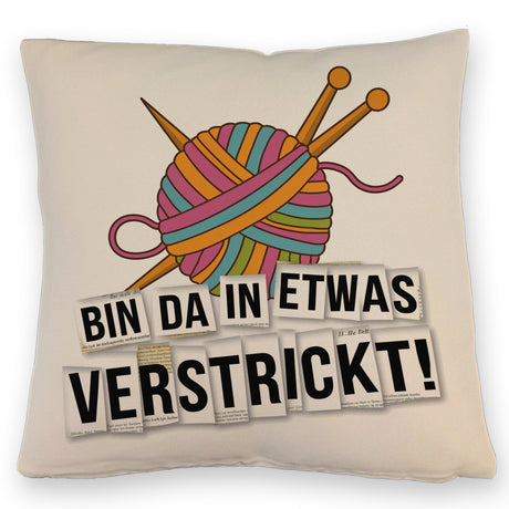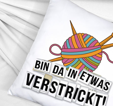Ab €14,90Grundpreis /Nicht verfügbarAuf LagerBin da in etwas verstrickt Kissen mit Wolle und Stricknadeln