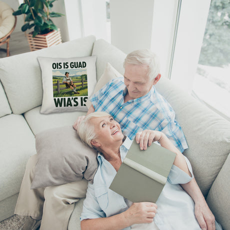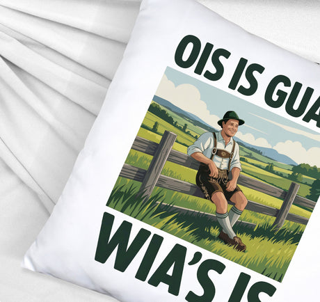 Ab €16,95Grundpreis /Nicht verfügbarAuf LagerAuf da Oim, do gibt's koa Sünd Kissen Berglandschaft mit Kühen
