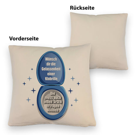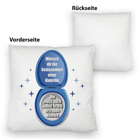 Kloschüssel Kissen mit Spruch: Sei gelassen wie eine Klobrille