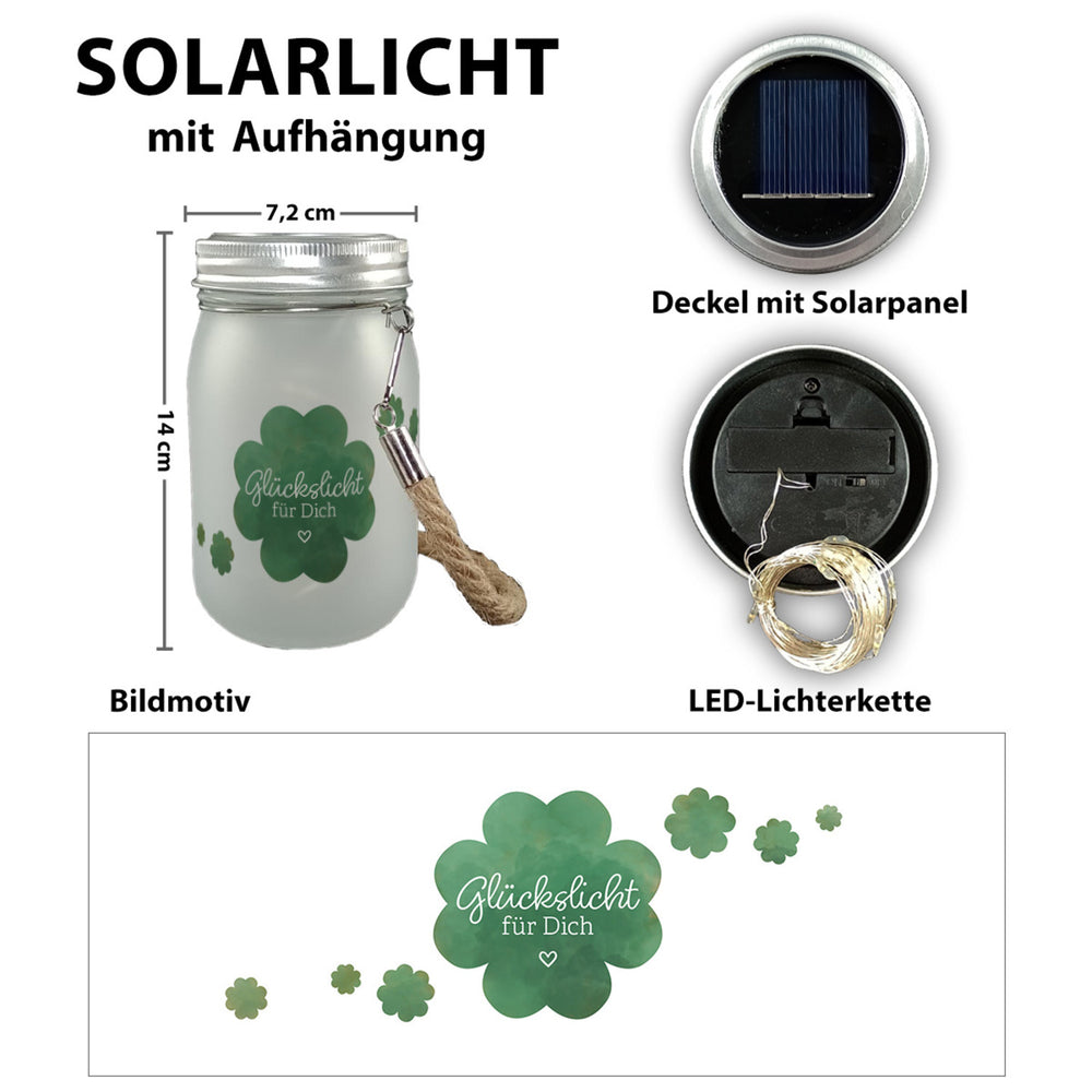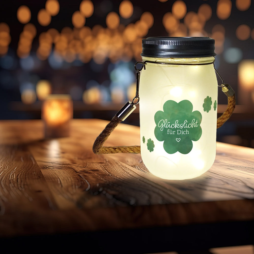 - Der Spruch Glückslicht für Dich unterstreicht den Charakter des Solarlichts als Glücksbringer. Es soll dem Besitzer Glück und Freude bringen, genau wie ein vierblättriges Kleeblatt. Es ist mehr als nur eine Lampe, es ist ein Symbol für Liebe und Glück.