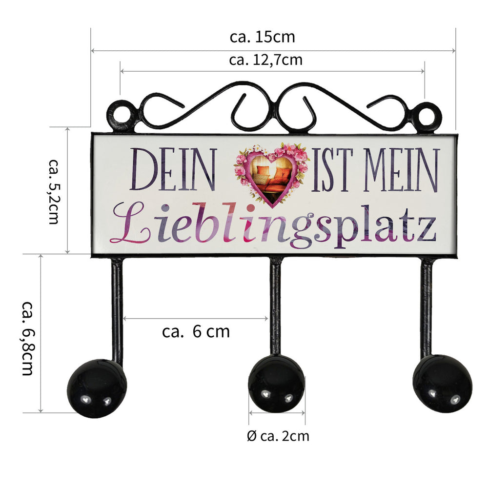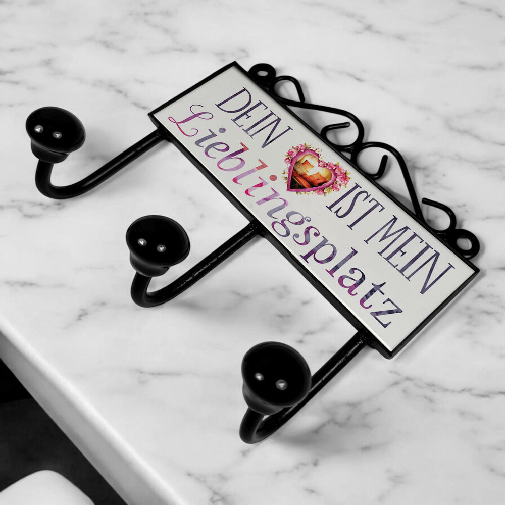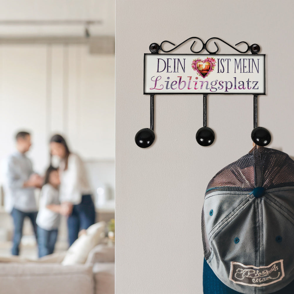 Dein Herz ist mein Lieblingsplatz Kleiderhaken Leiste mit 3 Haken