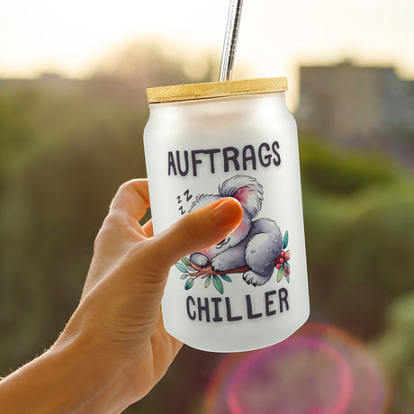 €14,95Grundpreis /Nicht verfügbar Schlafender Koala Trinkglas mit Bambusdeckel mit Spruch Auftragschiller