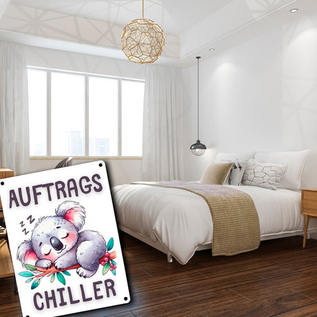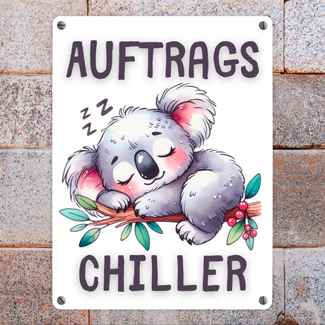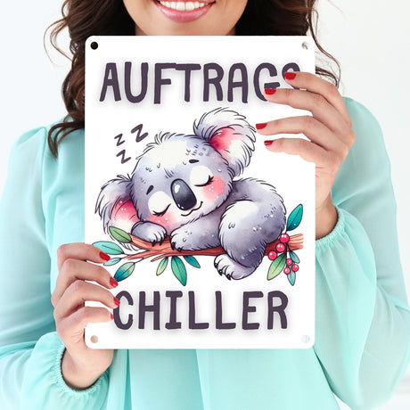 Schlafender Koala Metallschild in 15x20 cm mit Spruch Auftragschiller