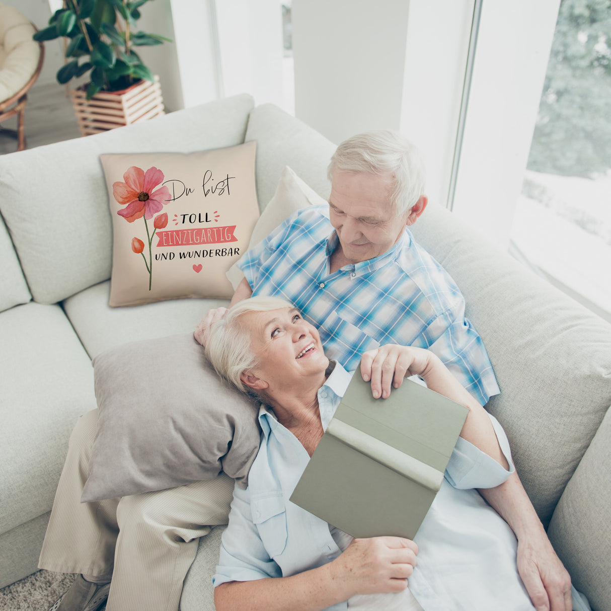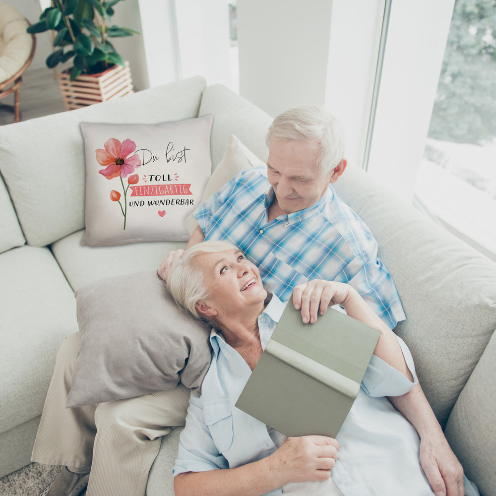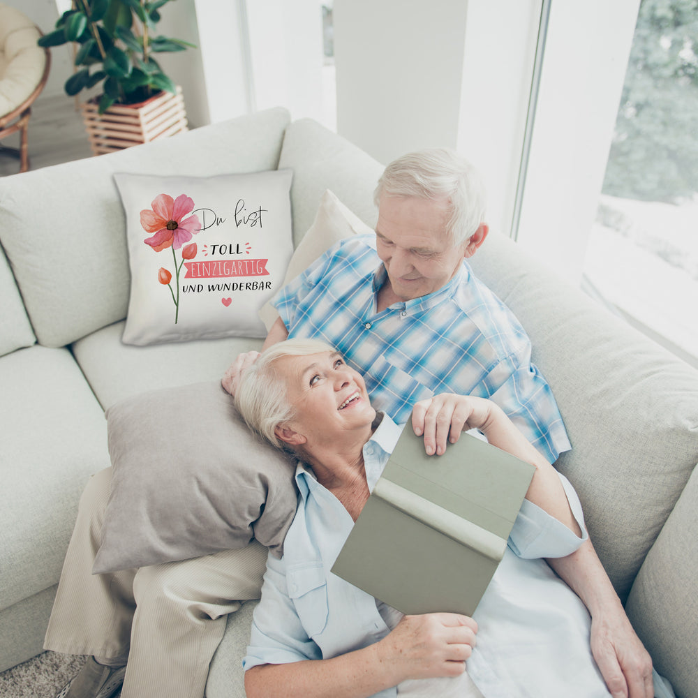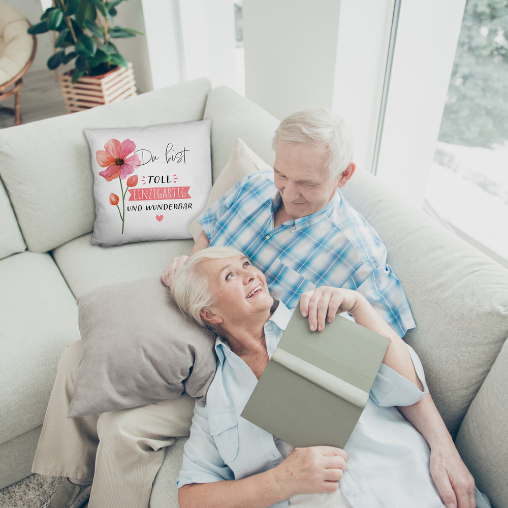 Blume Kissen mit Spruch Du bist toll einzigartig und wunderbar
