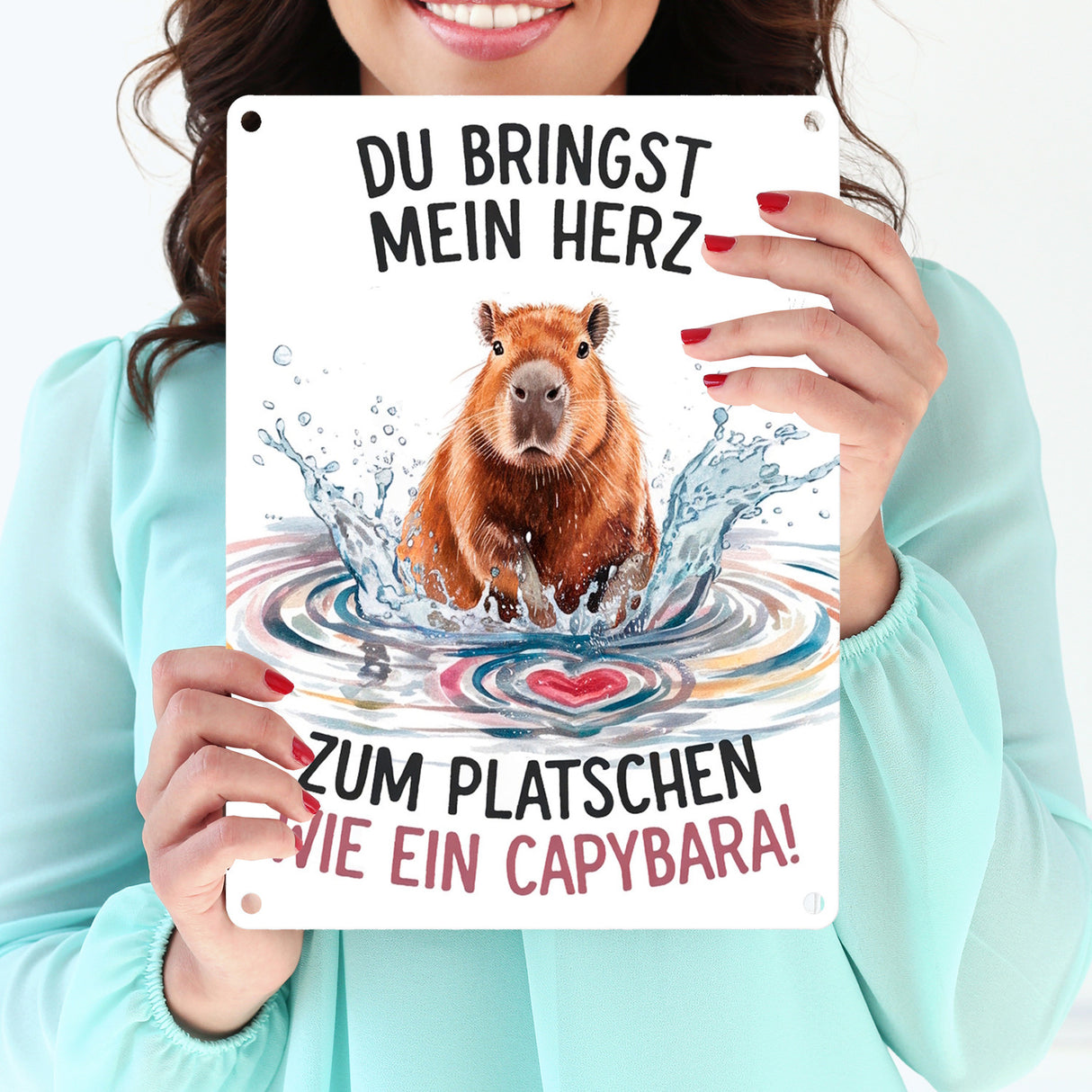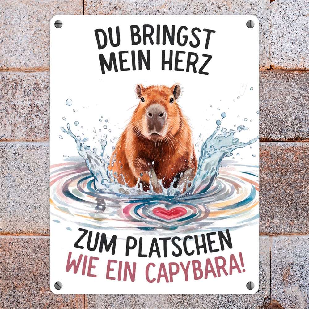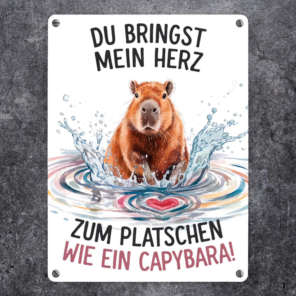 Bringst mein Herz zum Platschen Metallschild in 15x20 cm mit Capybara