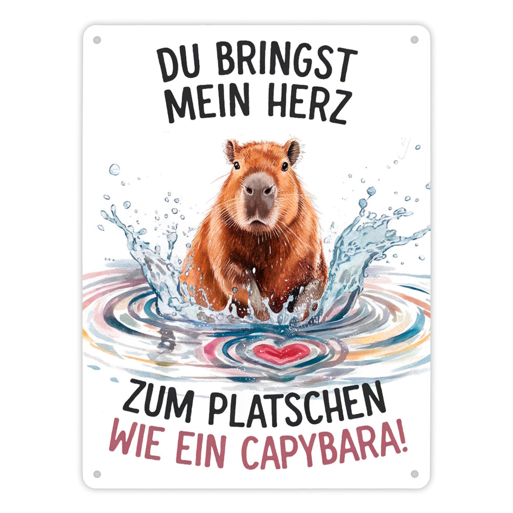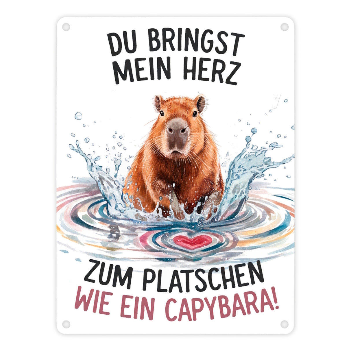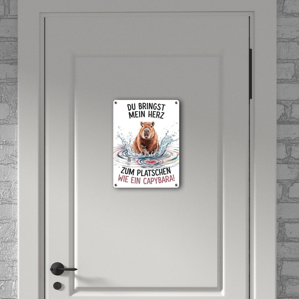 Bringst mein Herz zum Platschen Metallschild in 15x20 cm mit Capybara