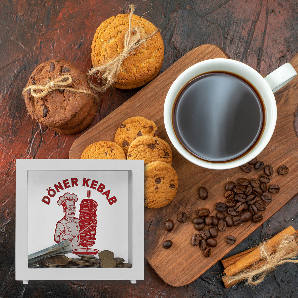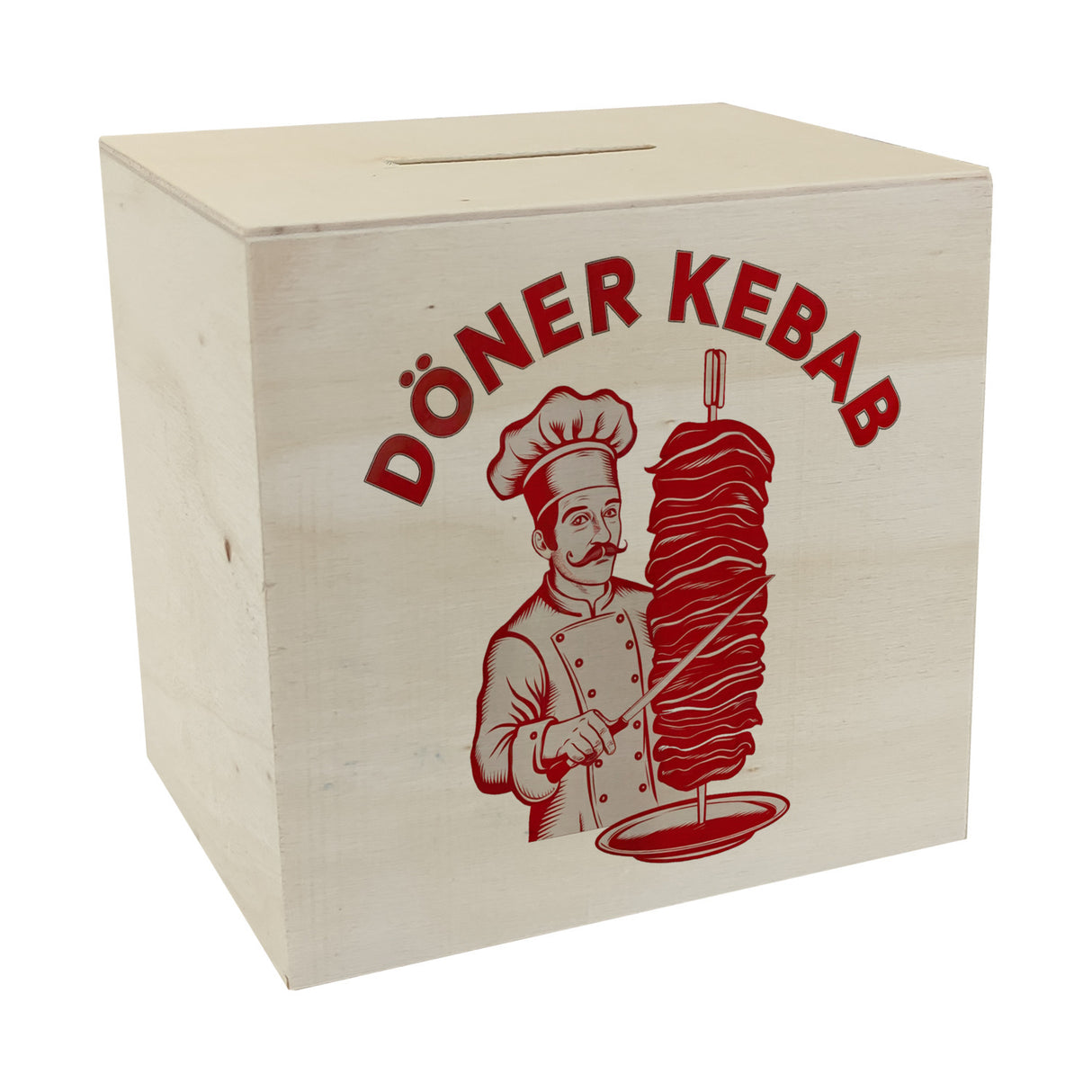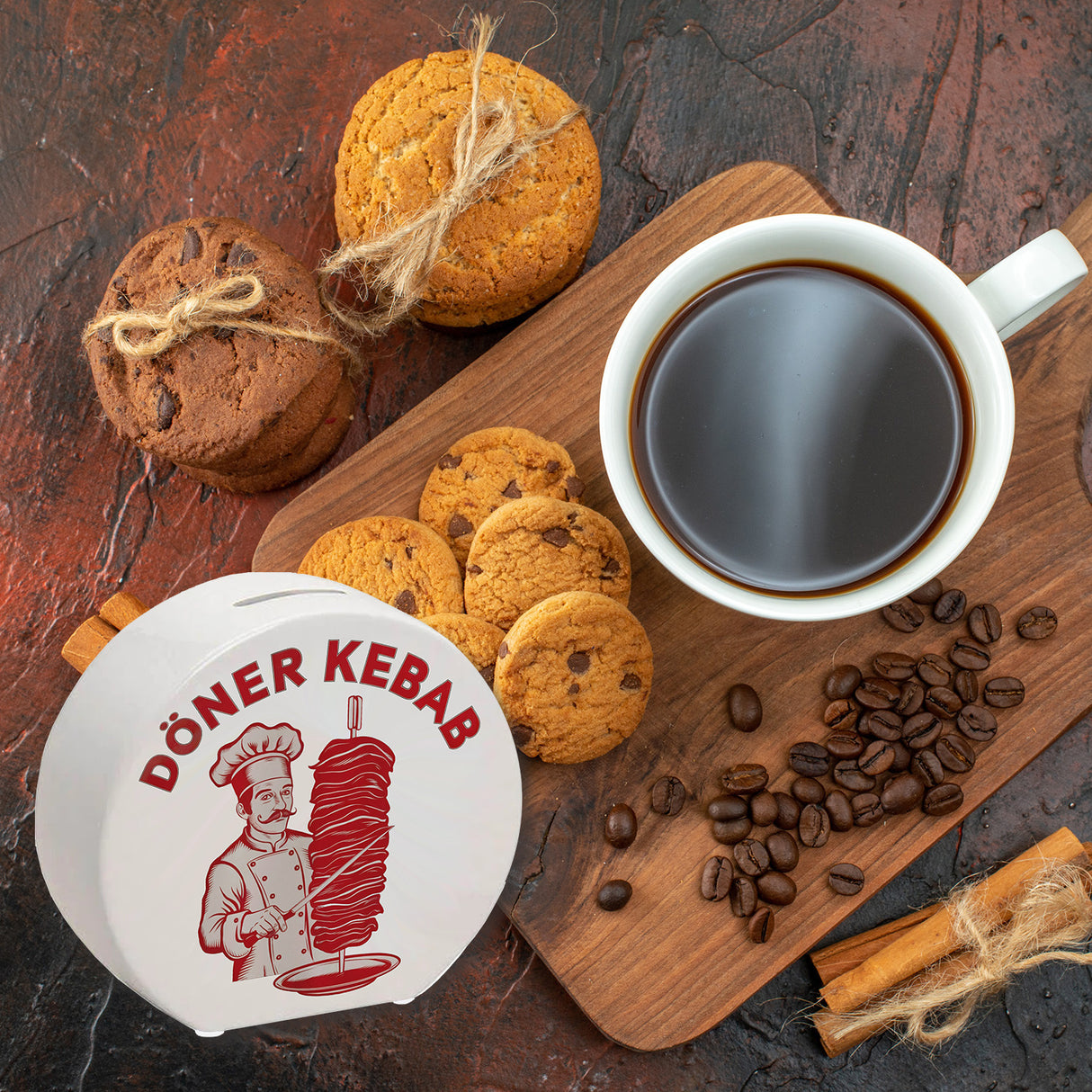 - Steck dein Trinkgeld in den "DÖNER KEBAB" Tresor! Diese witzige Spardose zeigt einen schnurrbärtigen Koch in Rot-Weiß, der stolz seinen riesigen Fleischspieß schneidet. Perfekt für deinen Dönerladen oder als Geschenk für Dönerliebhaber.