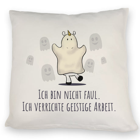 Einhorn-Geist Kissen mit Spruch Ich bin nicht faul Ich verrichte geistige Arbeit