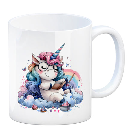 Einhorn-Geist Kaffeebecher mit Spruch Ich bin nicht faul Ich verrichte geistige Arbeit