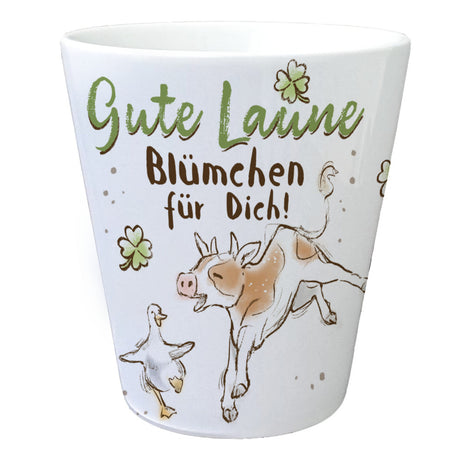 Kuh und Gans Blumentopf mit Spruch Gute Laune Blümchen für dich
