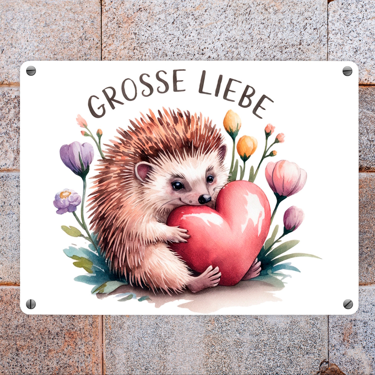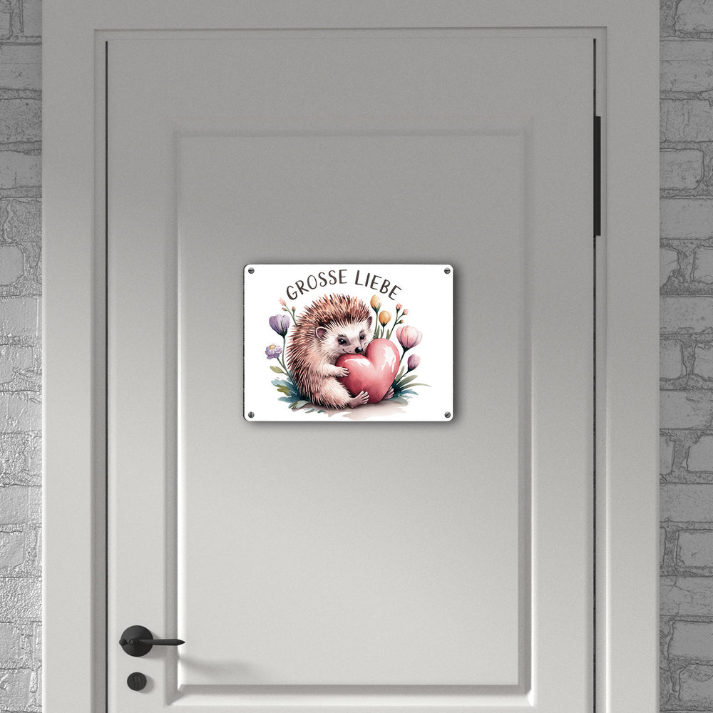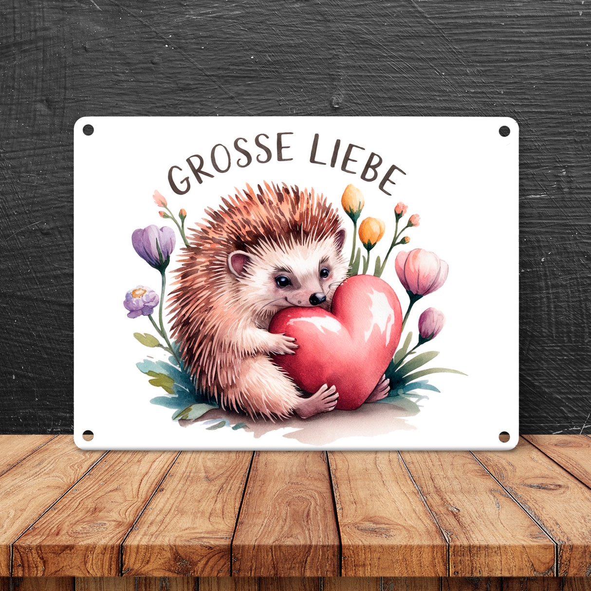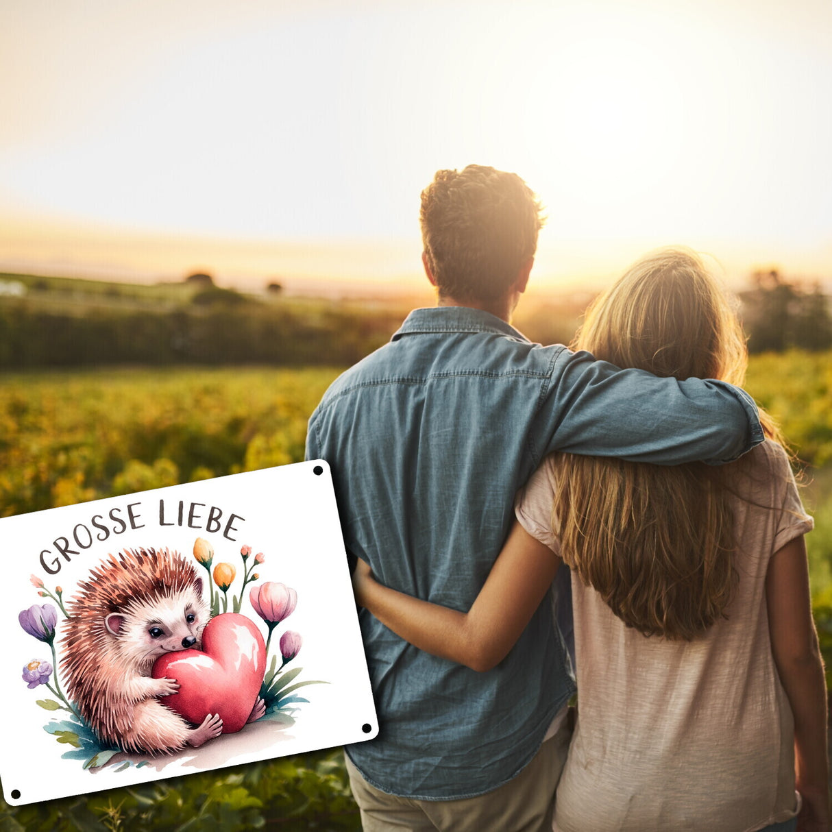 Igel mit Herz - Große Liebe Metallschild in 15x20 cm