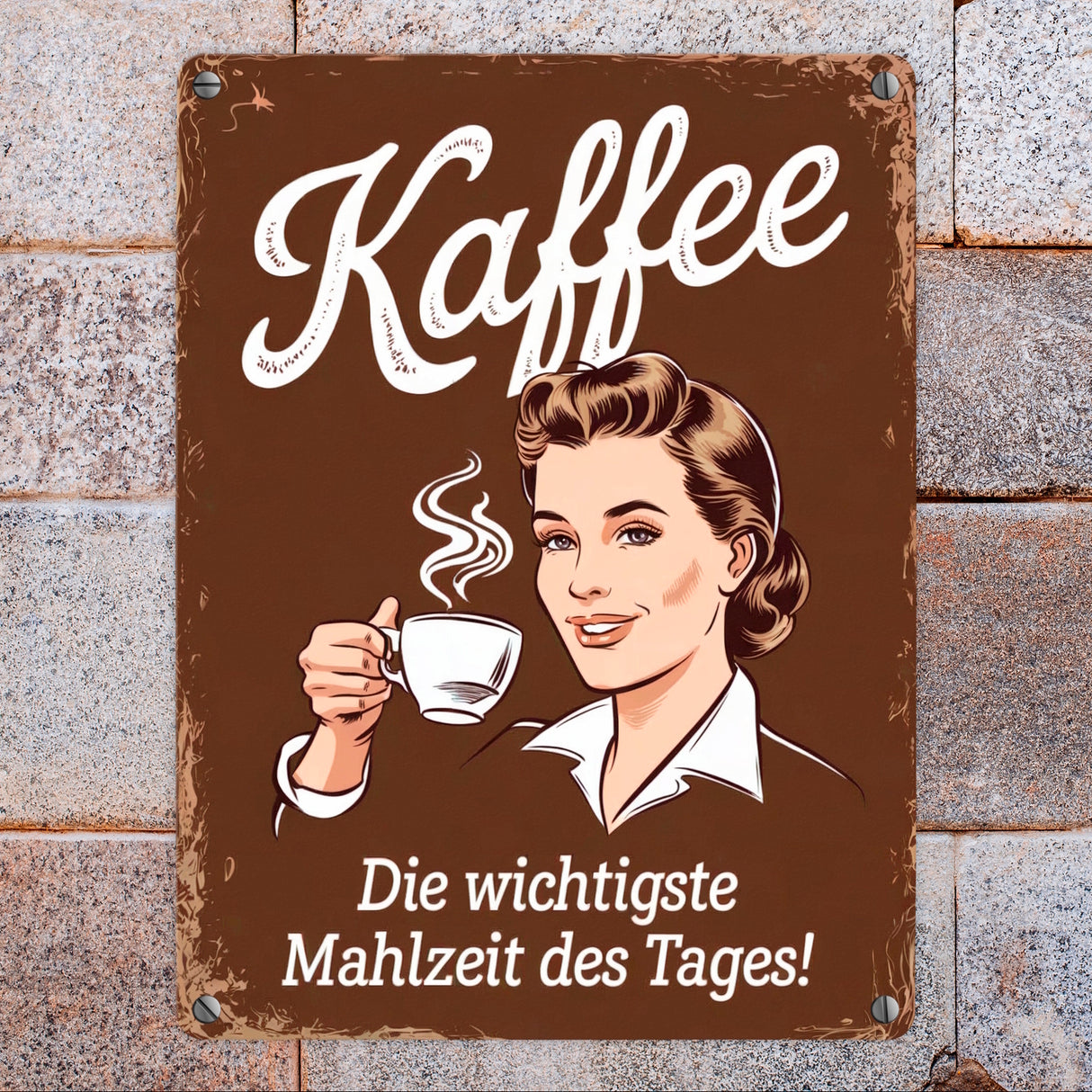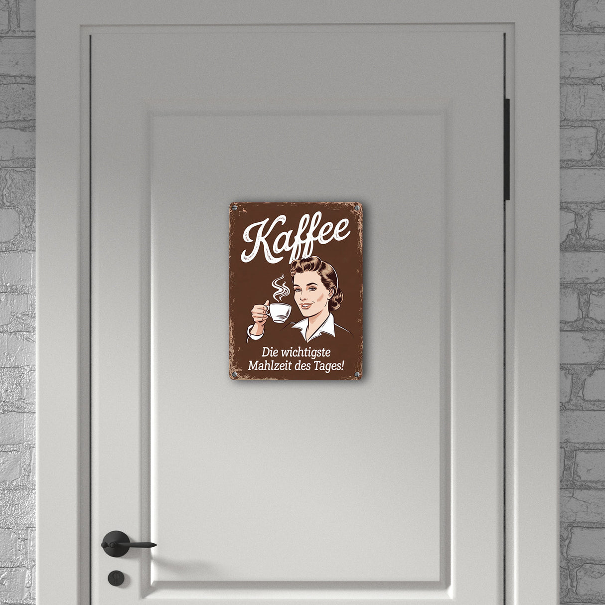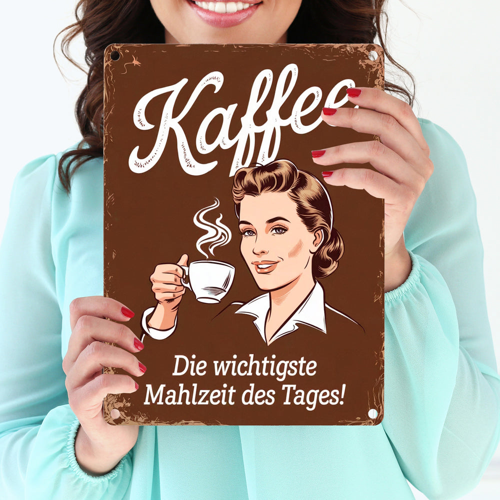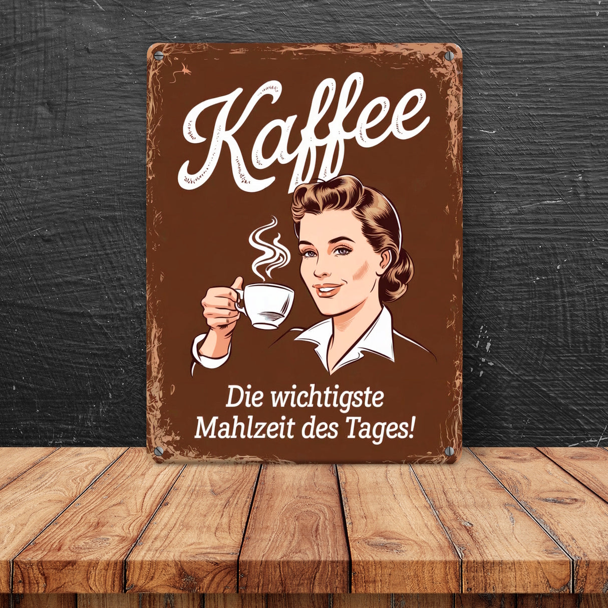 - 1x Kaffee - wichtigste Mahlzeit des Tages Metallschild in 15x20 cm in der gewählten Größe