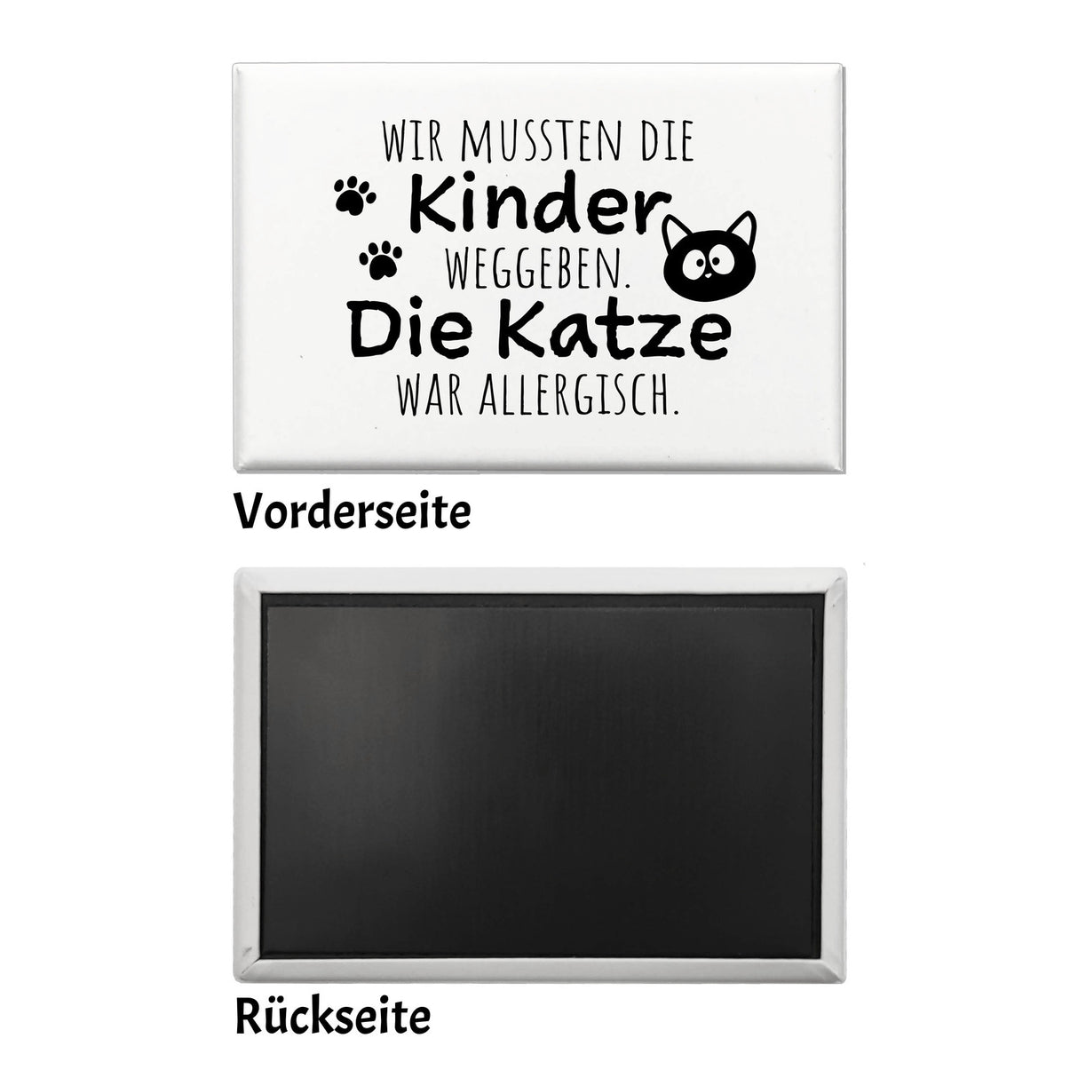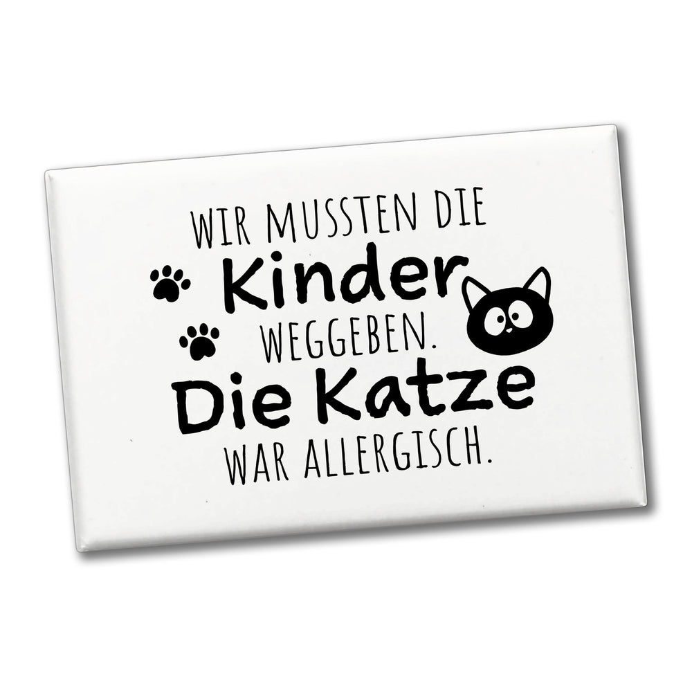 - Sind Sie Katzenmensch und lieben schwarzen Humor? Dieser eckige Magnet zeigt die perfekte Mischung aus beidem! Mit dem lustigen Spruch "Wir mussten die Kinder weggeben. Die Katze war allergisch" ist dieser Magnet ein super Geschenk für Frauen und bringt garantiert Lachen und Spaß in Ihr Leben.