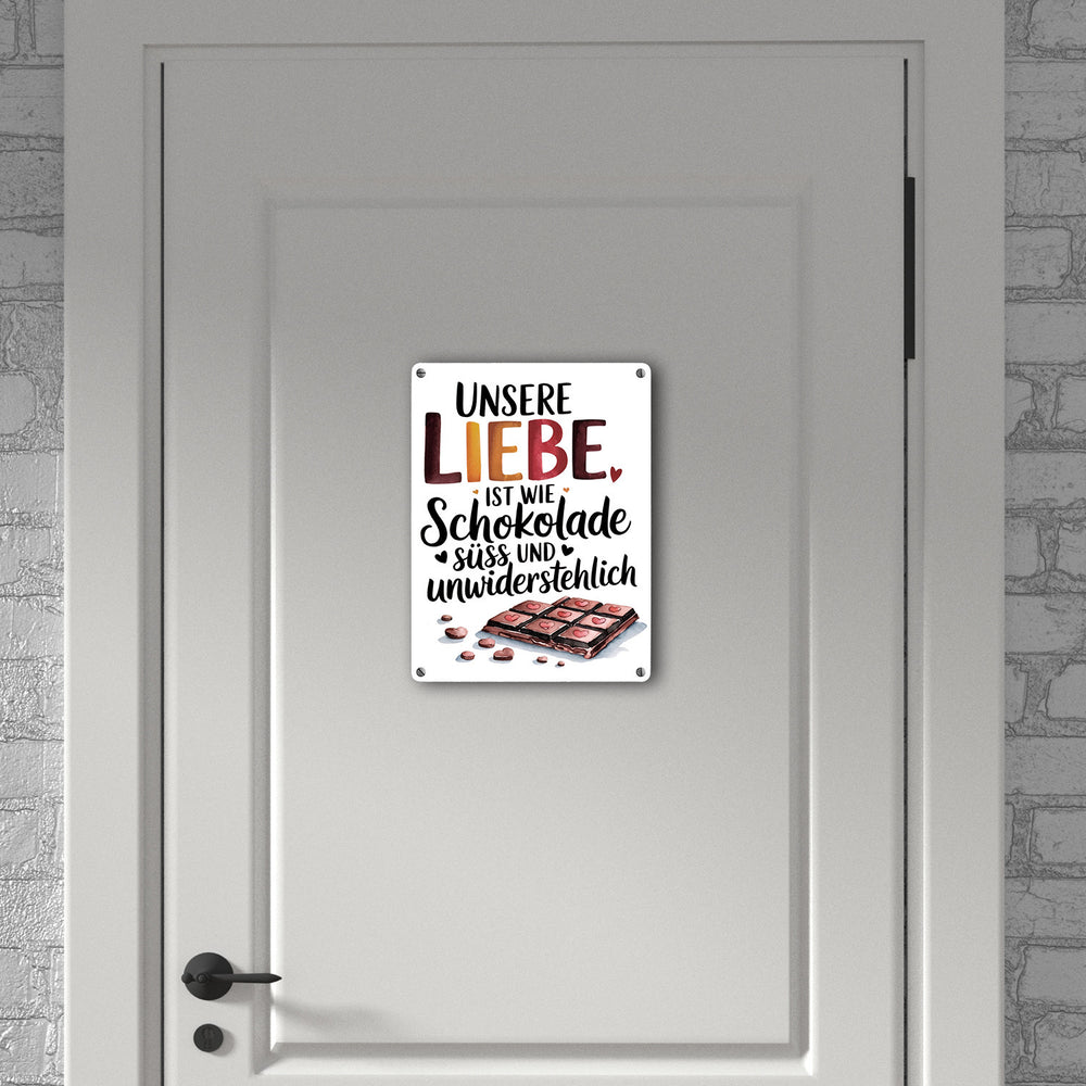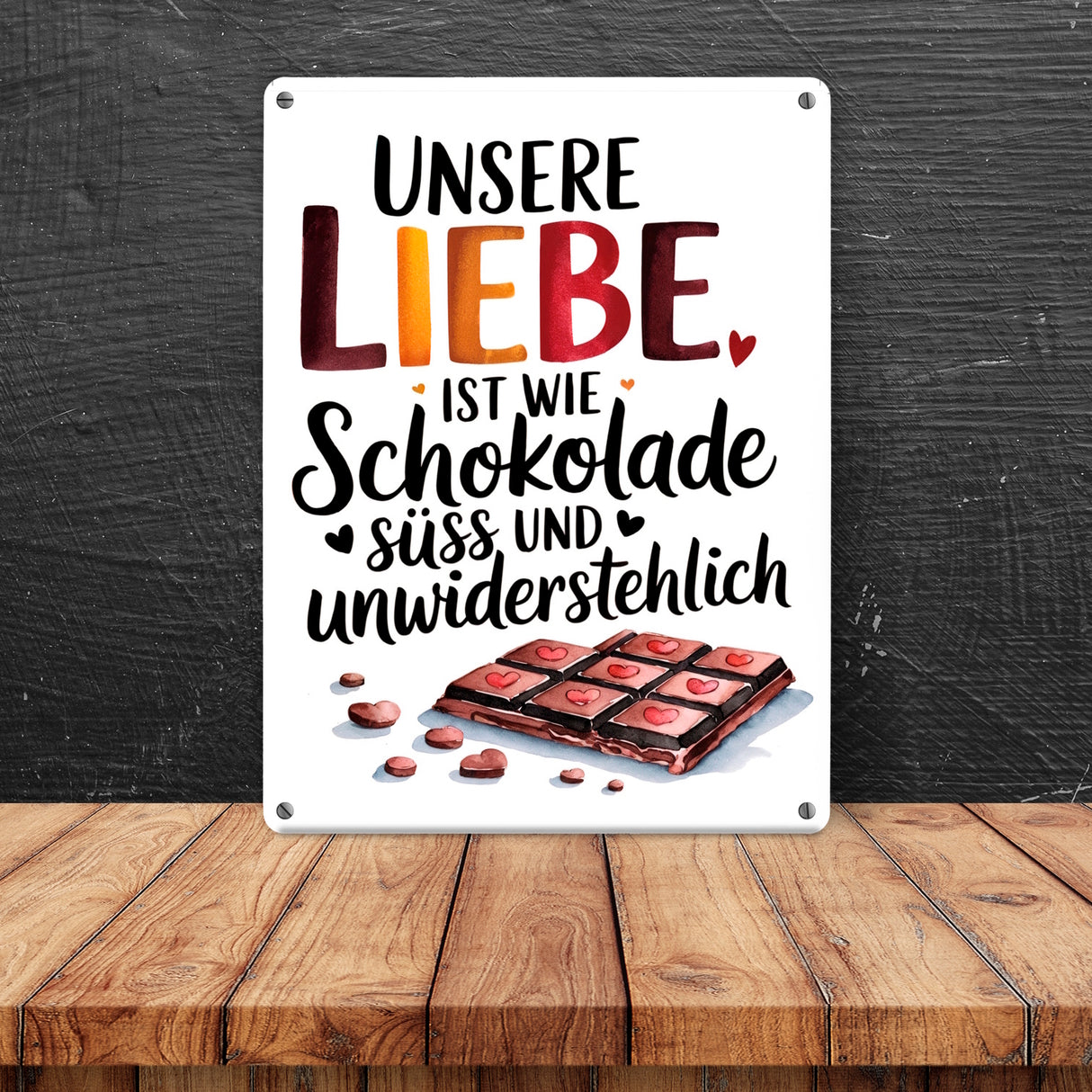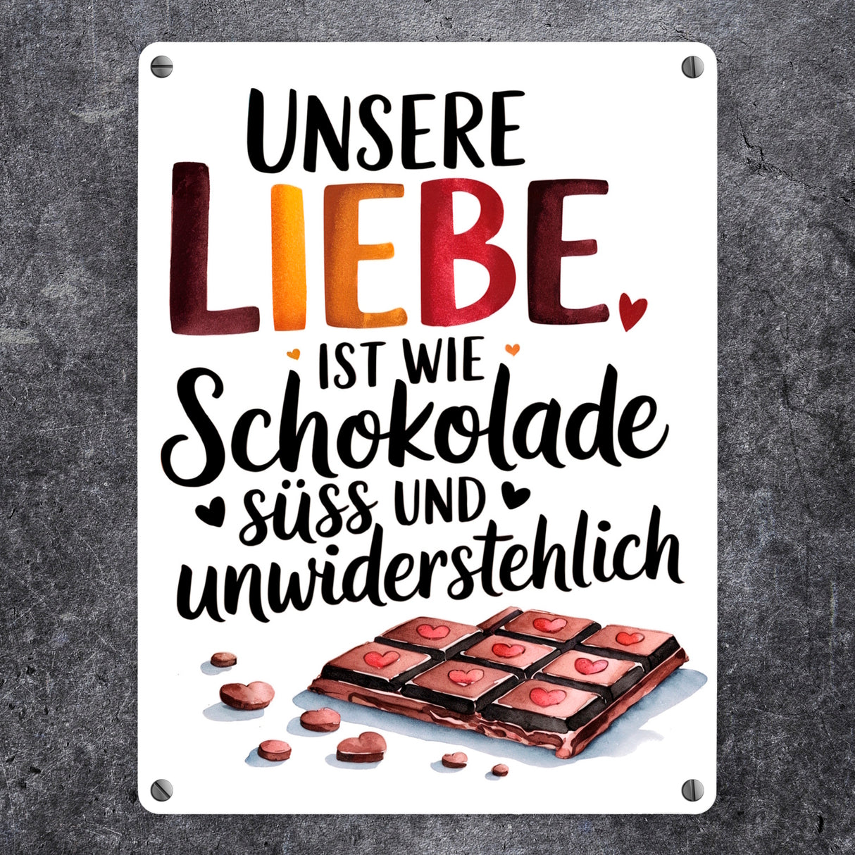 - Bestellen Sie jetzt dieses liebevoll designte und qualitativ hochwertige Metallschild! Mit seiner Botschaft macht es jedes Zuhause herzlicher und fesselnder. Ein Muss für alle, die Schokolade und Liebe zelebrieren möchten. Holen Sie sich ein Stück Romantik und Genuss in Ihr Leben – unwiderstehlich charmant und süß, genau wie die Liebe!
