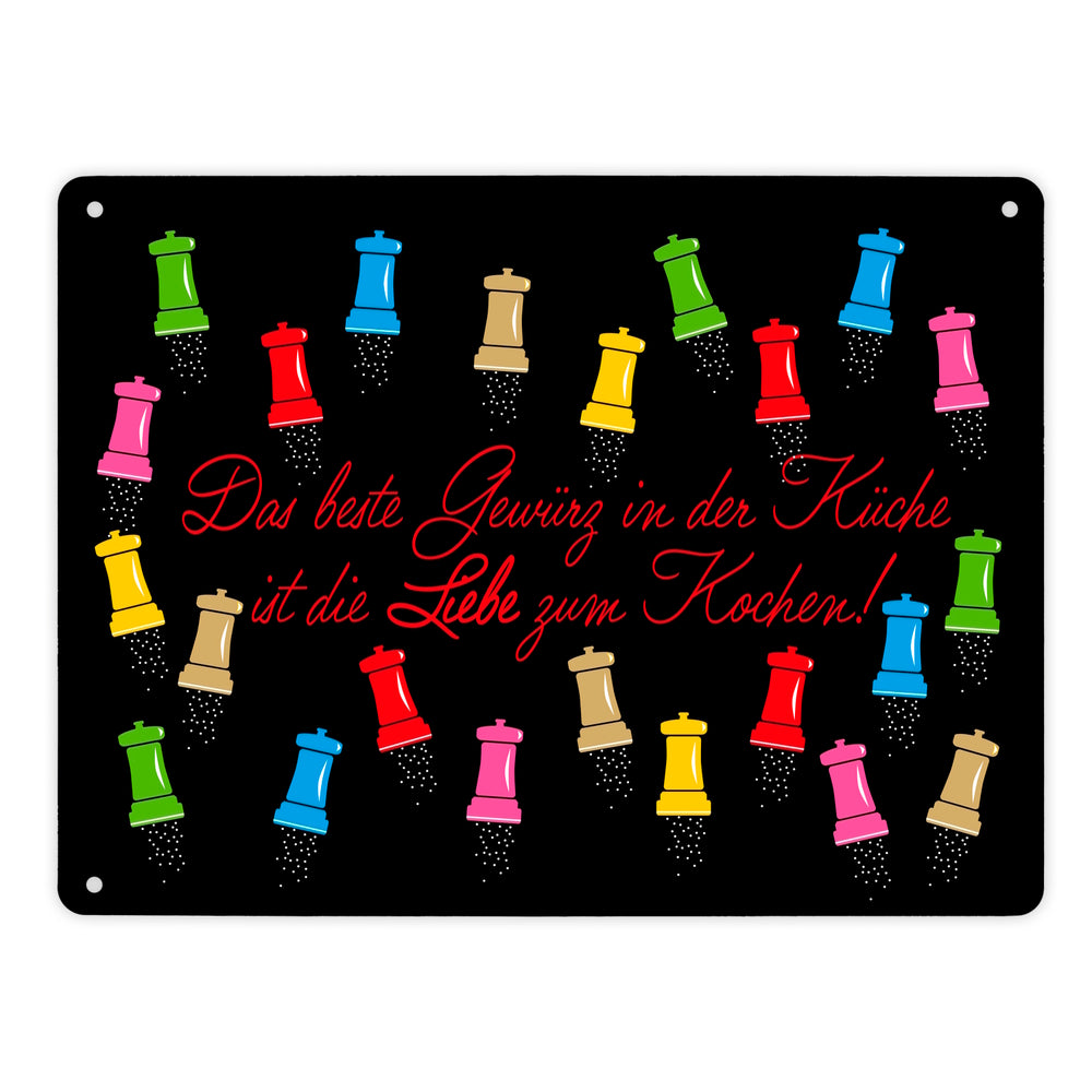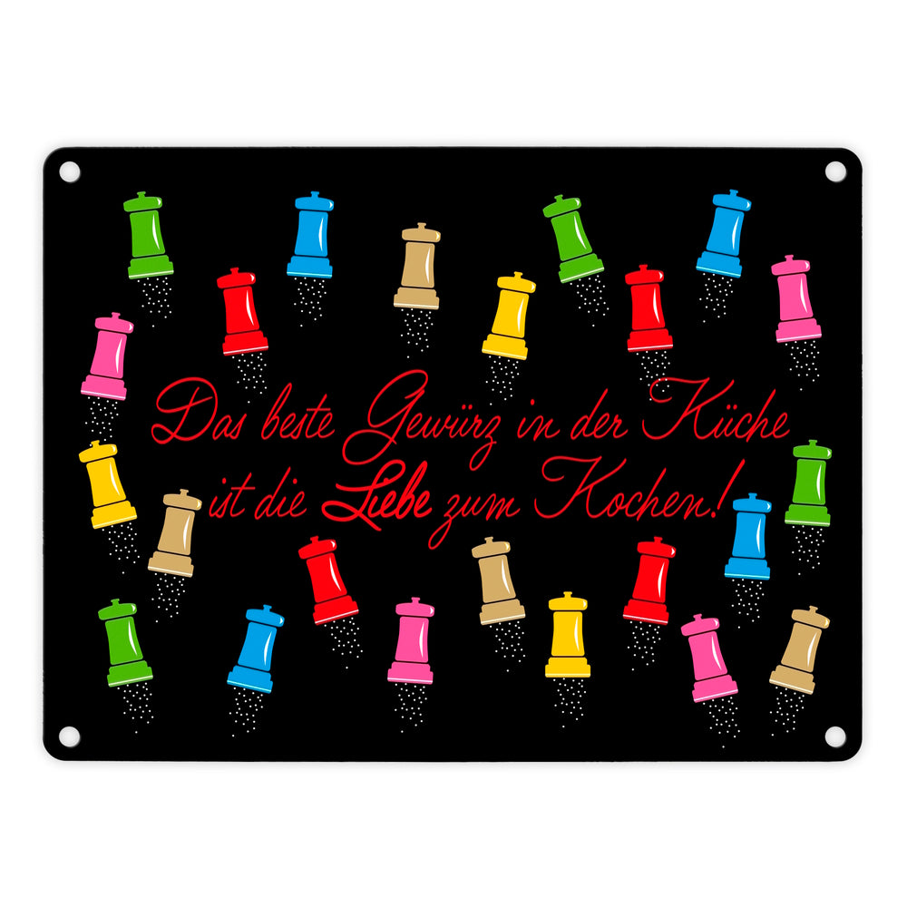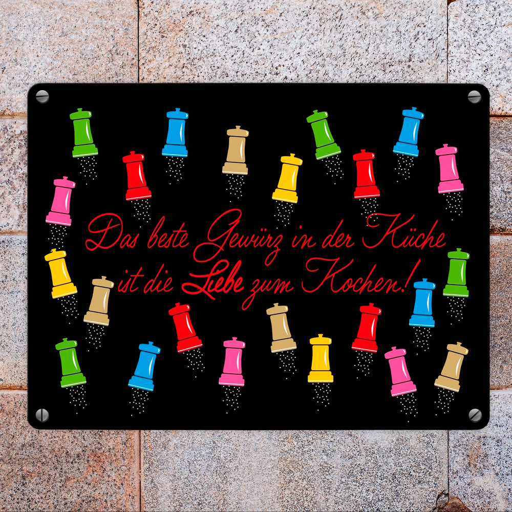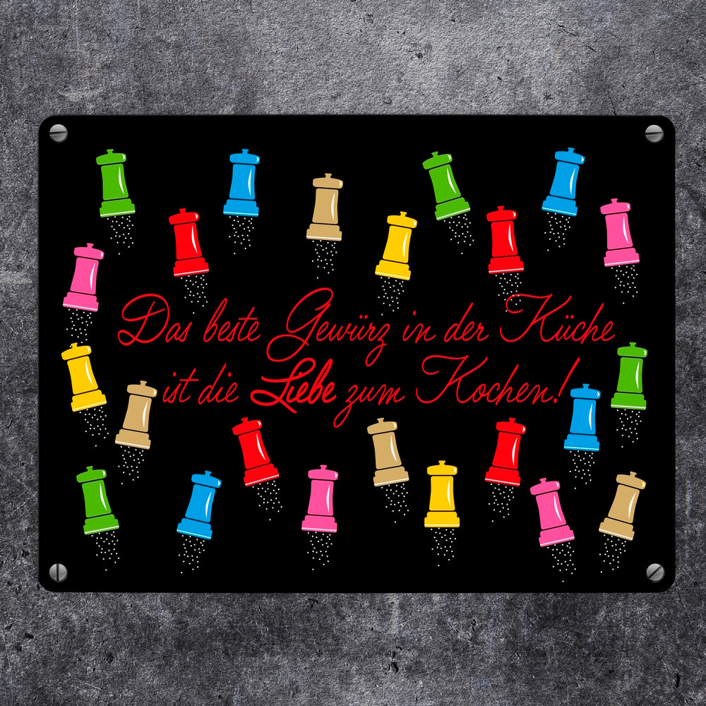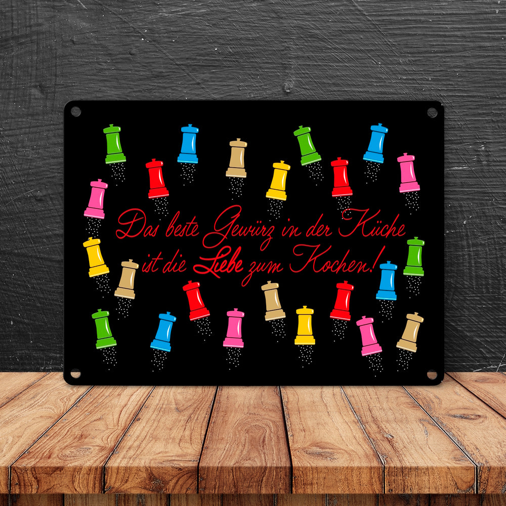 Liebe zum Kochen ist bestes Gewürz Metallschild in 15x20 cm