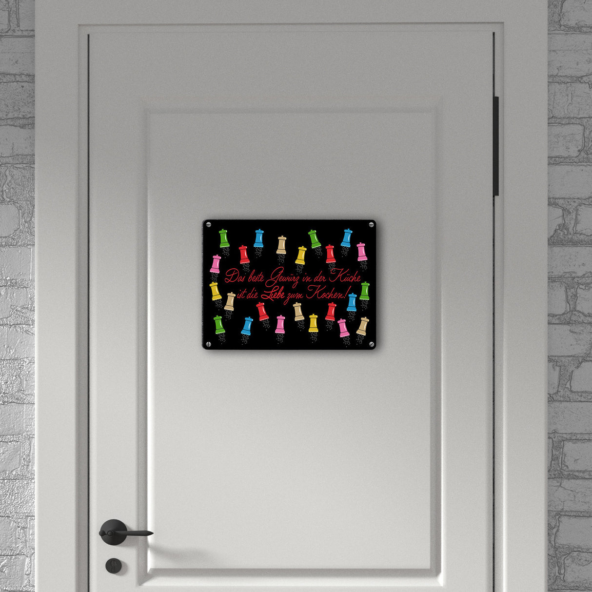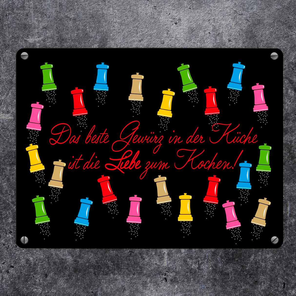 - Hol dir das Metallschild und sag tschüss zu faden Küchenwänden! Mit diesem charmanten Stück hast du immer eine Erinnerung daran, dass Liebe das wichtigste Gewürz ist. Perfekt als Geschenk für Hobbyköche oder als Eigenmotivation, denn Liebe geht bekanntlich durch den Magen – oder in diesem Fall über das Auge!