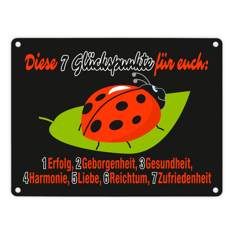 Marienkäfer Metallschild in 15x20 cm mit Spruch Sieben Glückspunkte