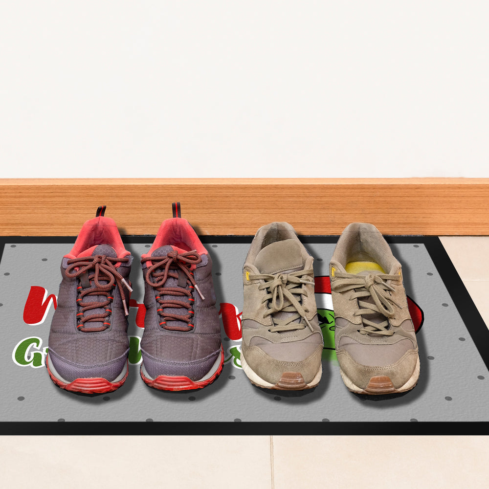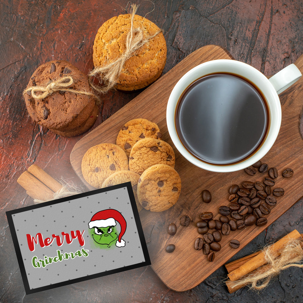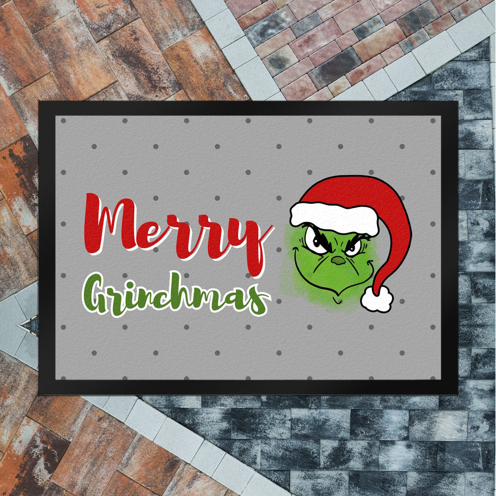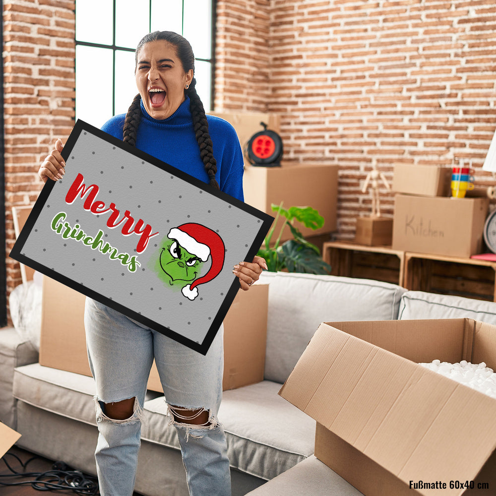 - Die lustige Fußmatte Merry Grinchmas bringt mit ihrem grünen Weihnachtsmuffel-Motiv und frechen Schriftzug garantiert jeden Besucher zum Schmunzeln. Sie ist nicht nur ein witziger Hingucker, sondern auch ein praktischer Helfer, um Schmutz draußen zu halten. Fußmatten sind ein Muss für jeden Eingangsbereich!