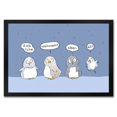 Pinguin Familie Fußmatte in 35x50 cm mit Spruch Fröhliche Weihnacht überall
