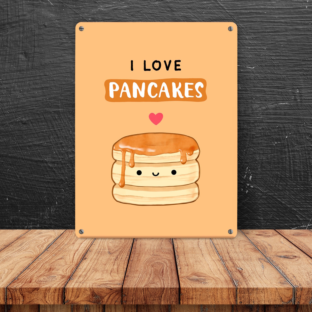 - Liebst du Pancakes? Dann wirst du unser Pancake Metallschild mit dem Spruch "I love pancakes" lieben! Das Schild zeigt ein süßes Pancake-Gesicht im kawaii Chibi Design - perfekt für Japanisch Fans und alle, die ihre Liebe zu Nachtisch und Waffeln zum Ausdruck bringen möchten.
