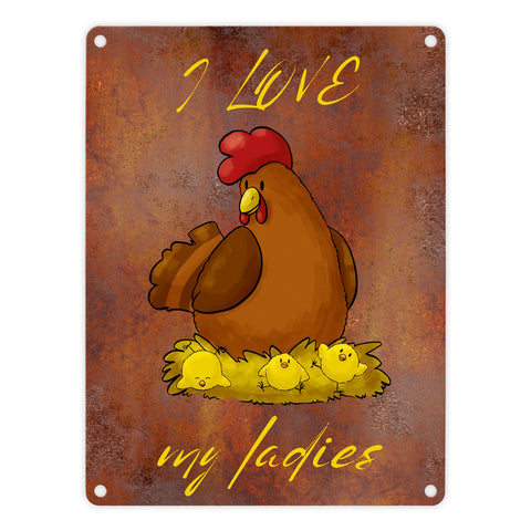 I love my ladies Huhn Metallschild in 15x20 cm mit Spruch