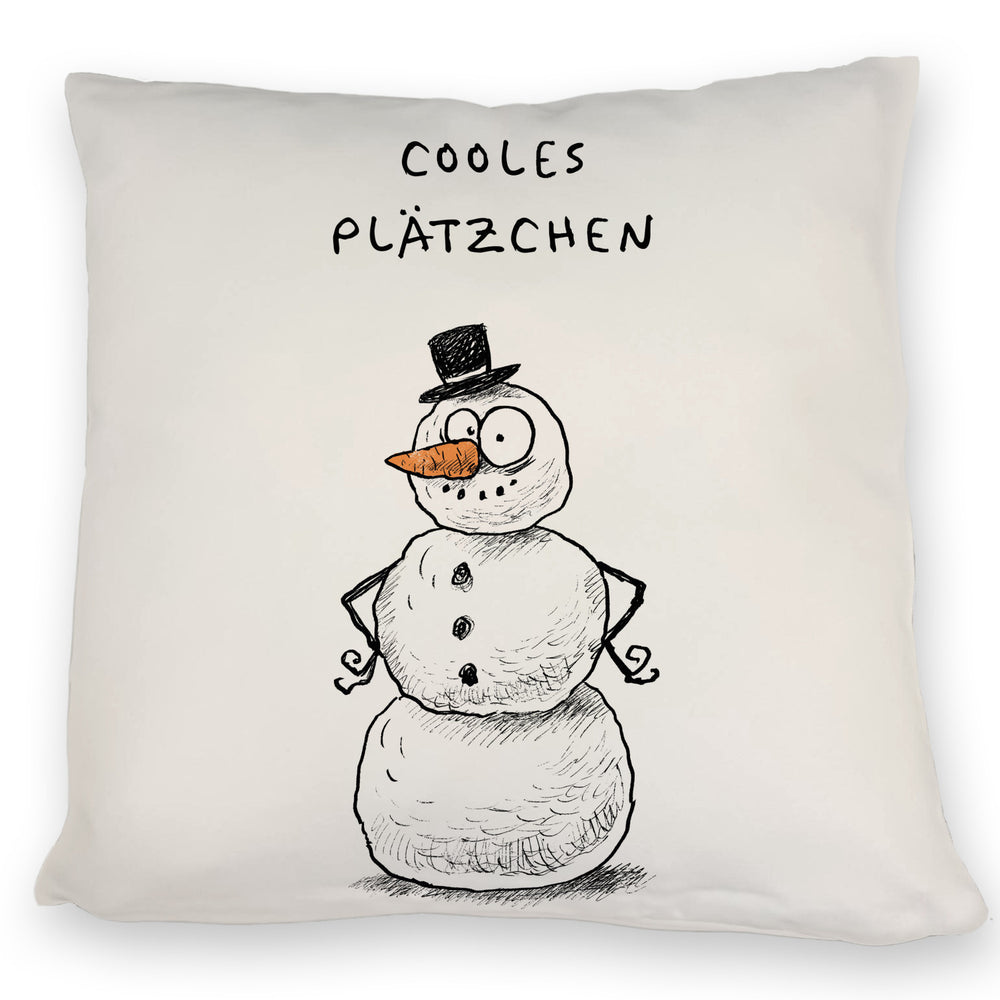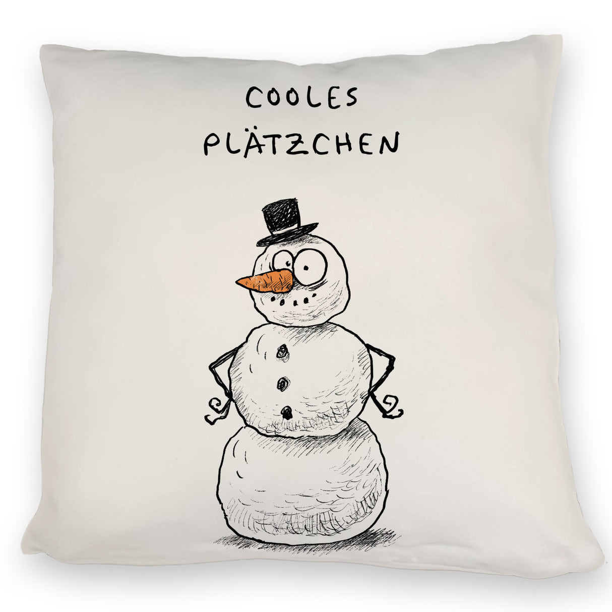 - 1x Schneemann mit Hut Kissen mit Spruch Cooles Plätzchen in der gewählten Ausführung